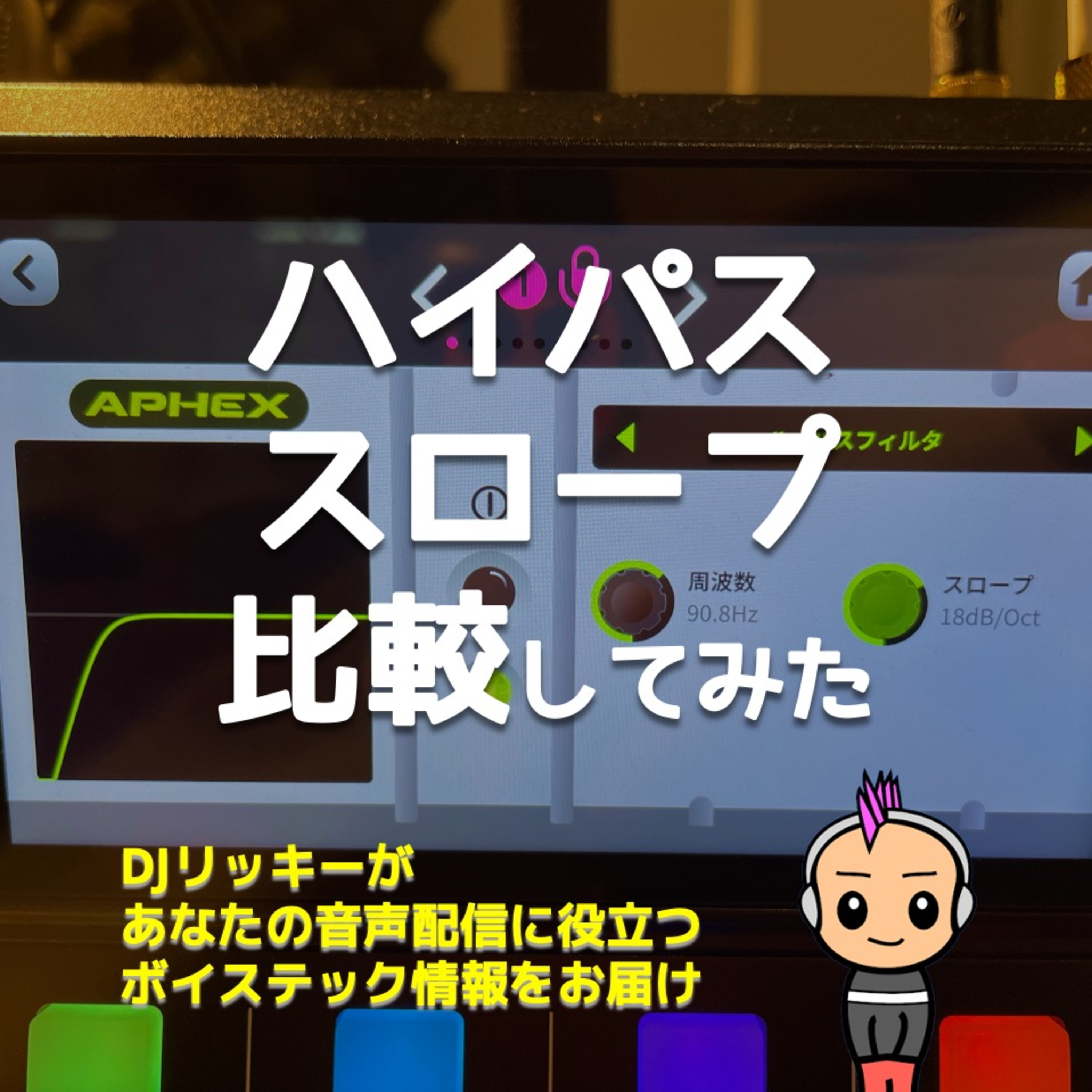 今日はちょっと話が脱線しましたけど、音質比較、ハイパスフィルターのスロープを変えるとどうなるのかという、
