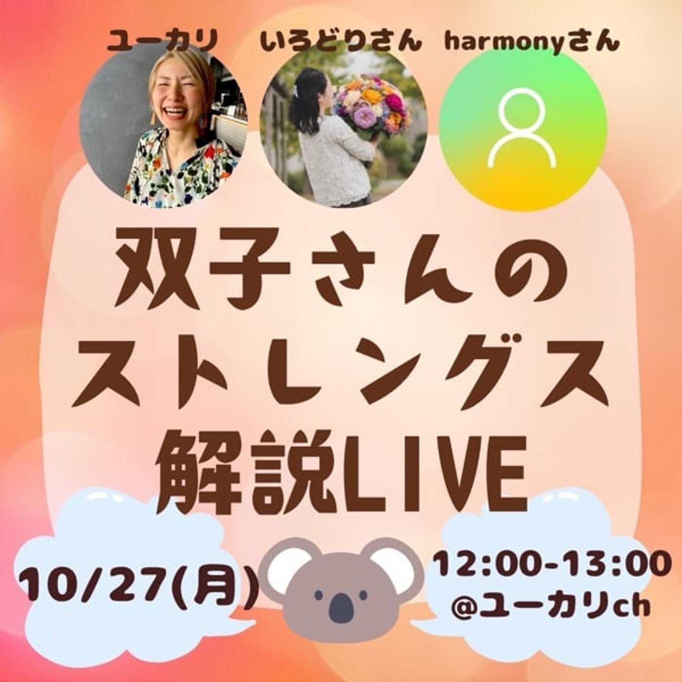 はい、こんにちは。始まりました。今日は双子さんのストレングスファインダー解説LIVEということで、よろしくお願いいたします。