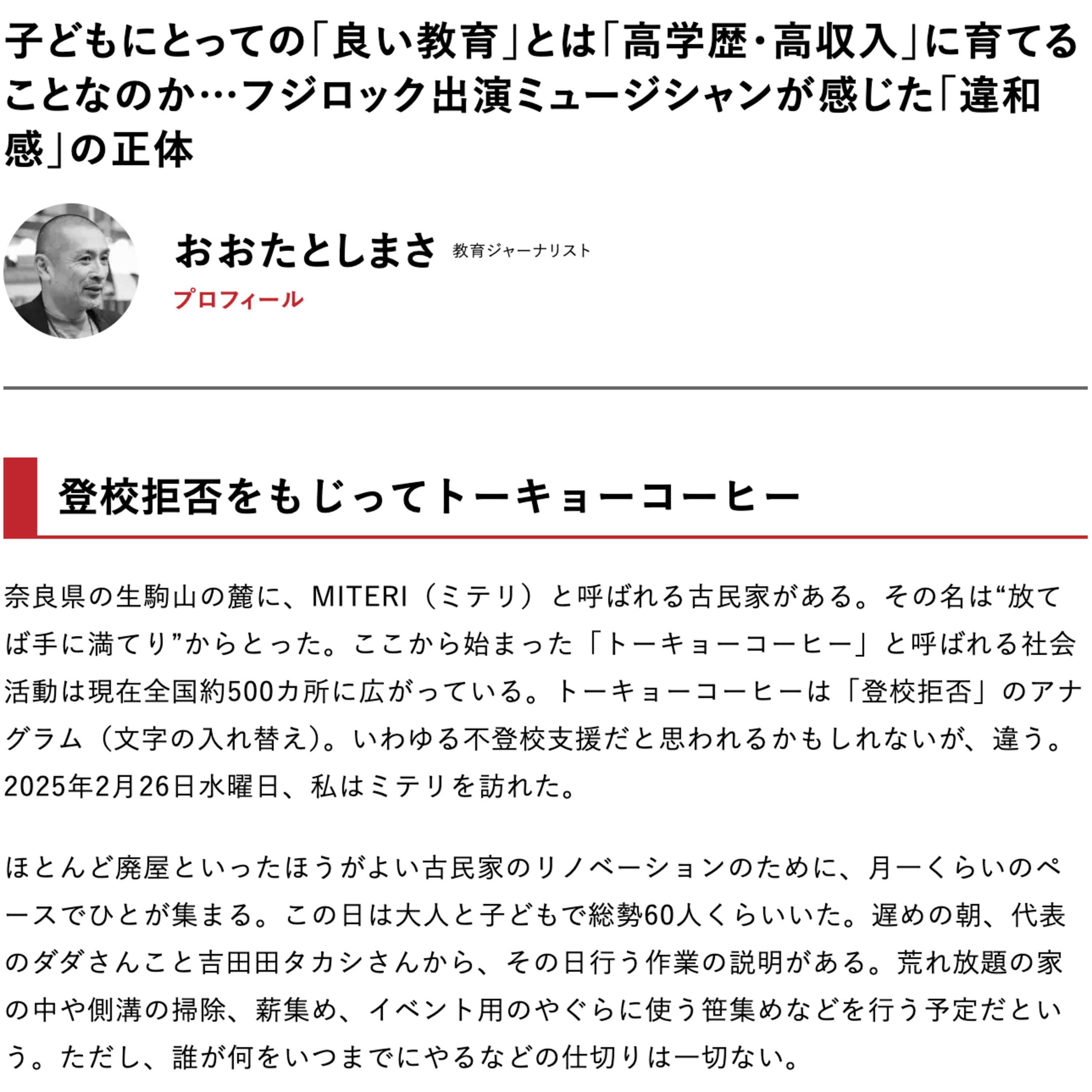 2025年4月19日に現代ビジネスに掲載された記事「子どもにとっての「良い教育」とは「高学歴・高収入」に育てることなのか…フジロック出演ミュージシャンが感じた「違和感」の正体」をAIが忖度なしにレビューします。