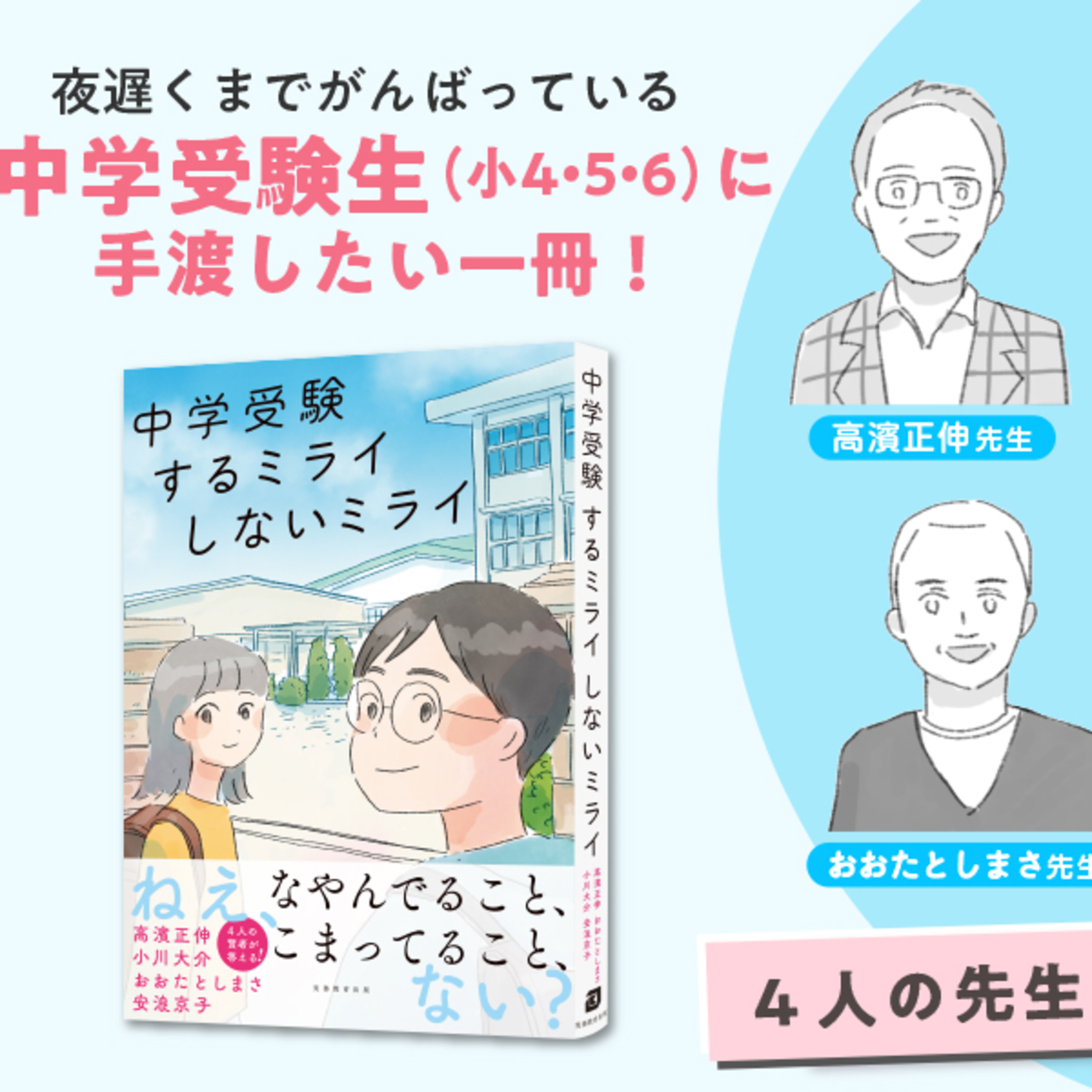子どもにアドバイスしたい、でも思春期に入りかけのわが子には言葉が届かない……。そんなじれったい思いを抱いているご両親に代わって、4人の中学受験界のカリスマが子ども目線で親身な助言を届けます!