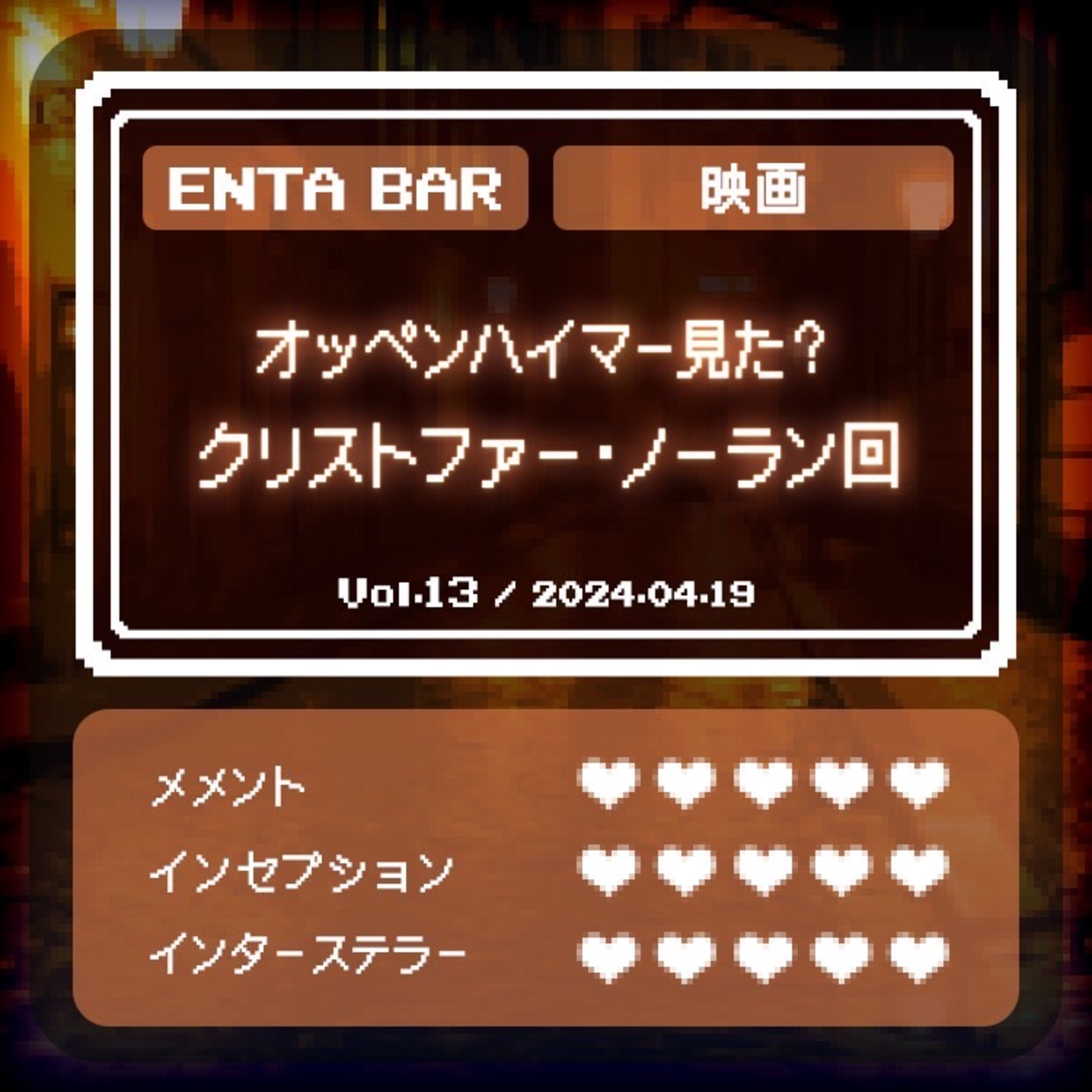 エンタメについて語らう場所「エンタメしゃべりBAR」略して「エンタバー」で、マスターの"momo8bit"、アルバイトの"もソラ"、常連客の"オタコン"が楽しくしゃべるポッドキャスト番組です
