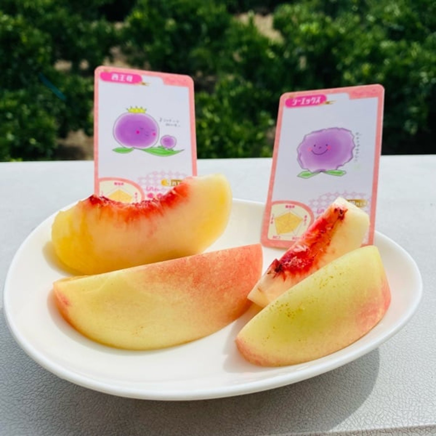 あ、ちなみにあの、つむぎ果樹園さんは桃カードっていうのがあって、桃の特徴をですね、書いてくださってるんですよ。
