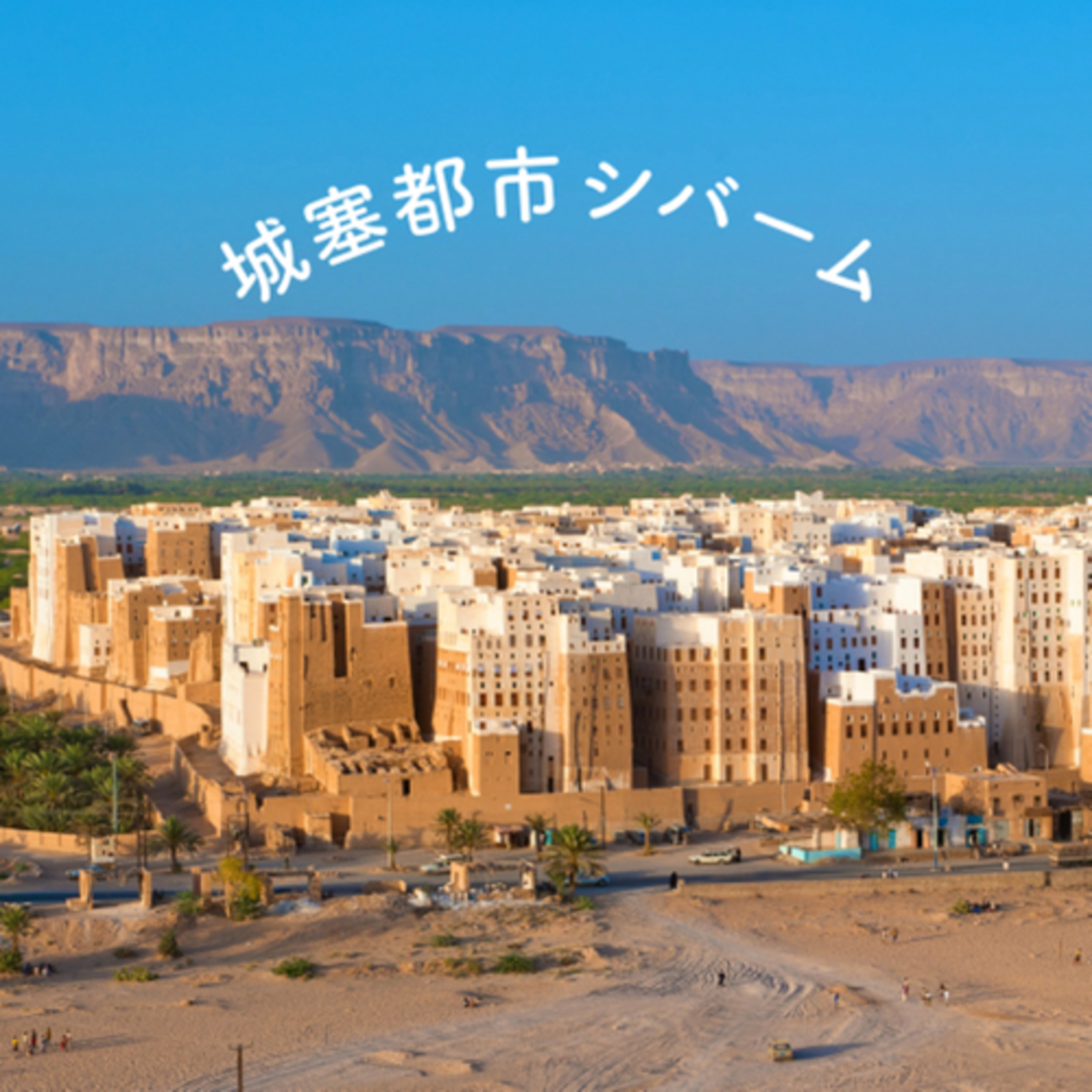 イエメン中部のシバームは、日干しレンガでつくられた高層住宅が林立する砂漠の城壁都市