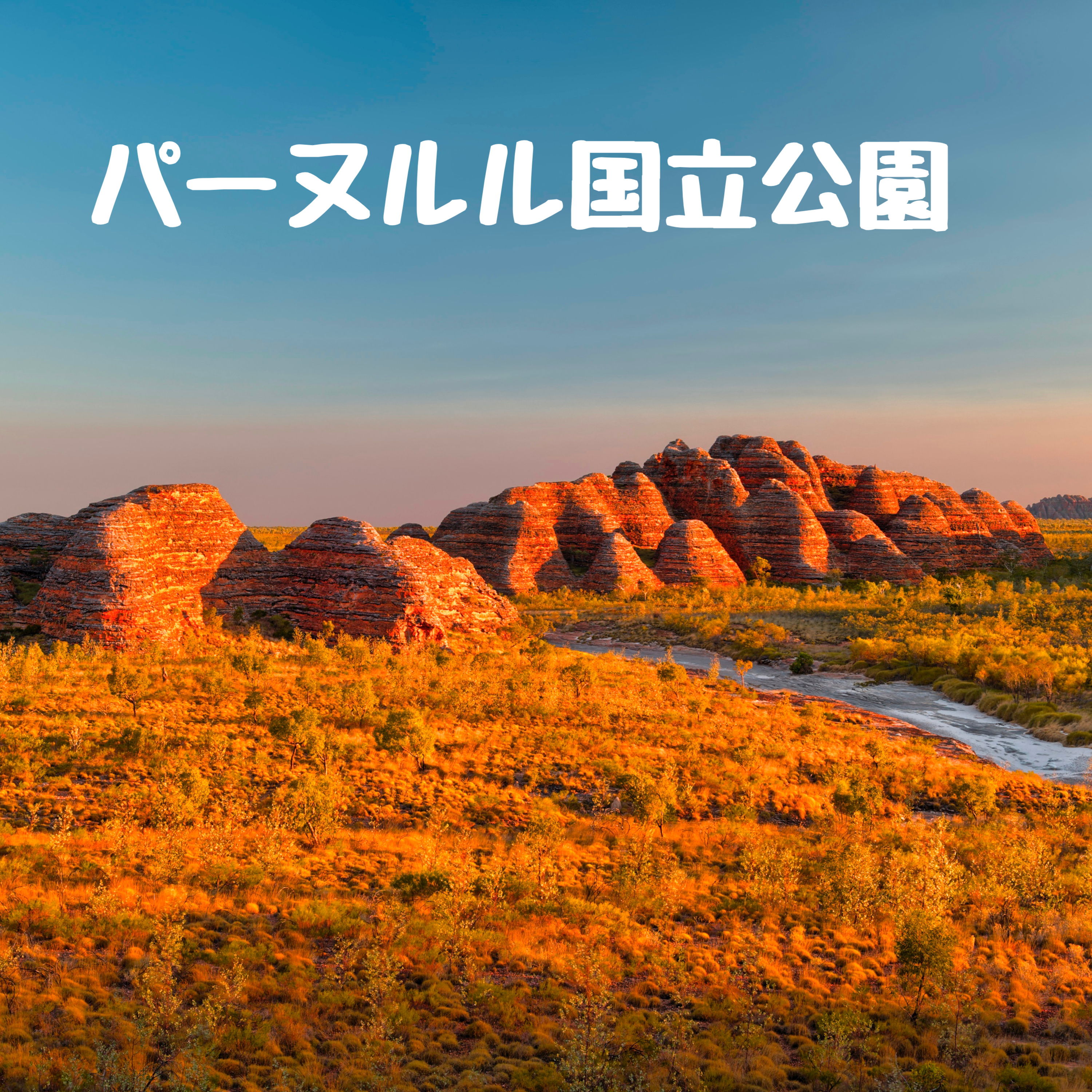 公園中央にあるバングル・バングルは、もとは約3億5,000万年前に川底に堆積した砂岩が約2,000万年以上の時を経て、浸食と風化によって、ミツバチの巣状や円錐形の奇岩となったもの。