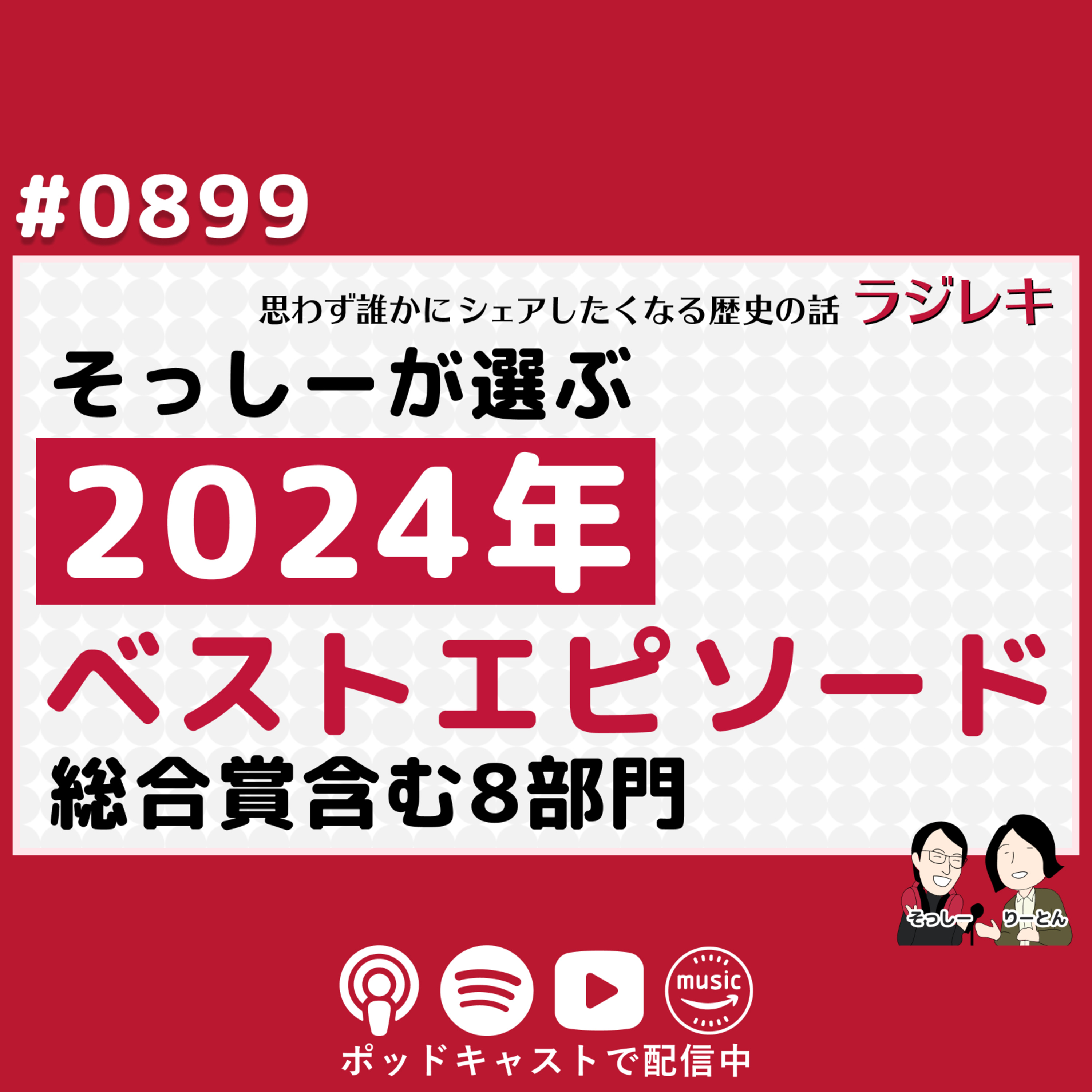 2024年「ラジレキ」のベストエピソードを発表!例年はTOP3を選出していましたが、今年は部門ごとに選定しました。「総合賞」をはじめ、「日本史」「中国史」「ヨーロッパ」「アジア・アフリカ」の地域別部門に加え、3つの特別賞など、全8部門でそっしーの選んだエピソードをご紹介します。部門ごとにそっしーが選定した理由をお聞きいただきながら、今年のラジレキを一緒に振り返りましょう。