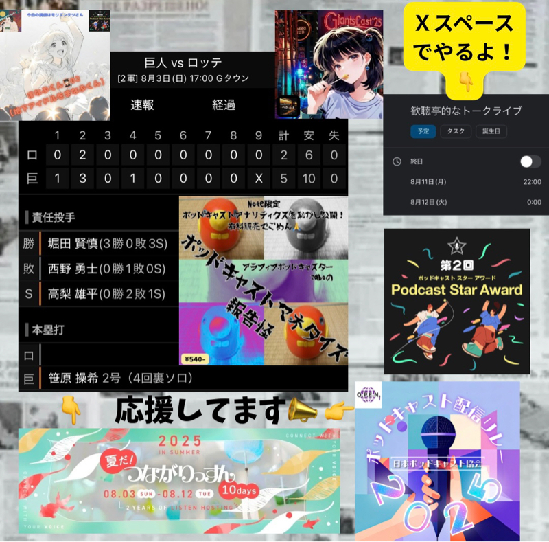 ポッドキャストスターアワード、いよいよ締め切り間近、締め切りを8月31日でございます。