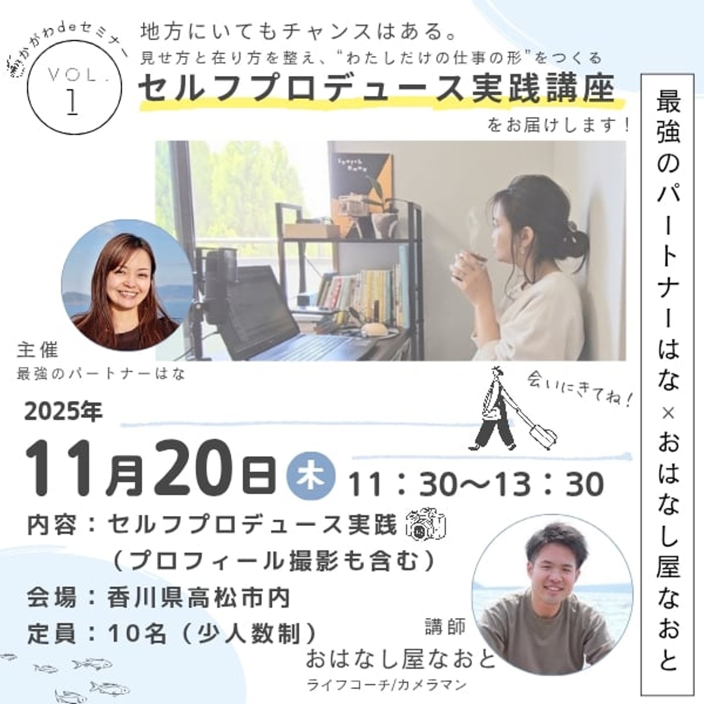 その前に告知ですね。11月20日の木曜日、11時30分から香川県高松市にて、セルフプロデュース実践講座というセミナーを行います。
