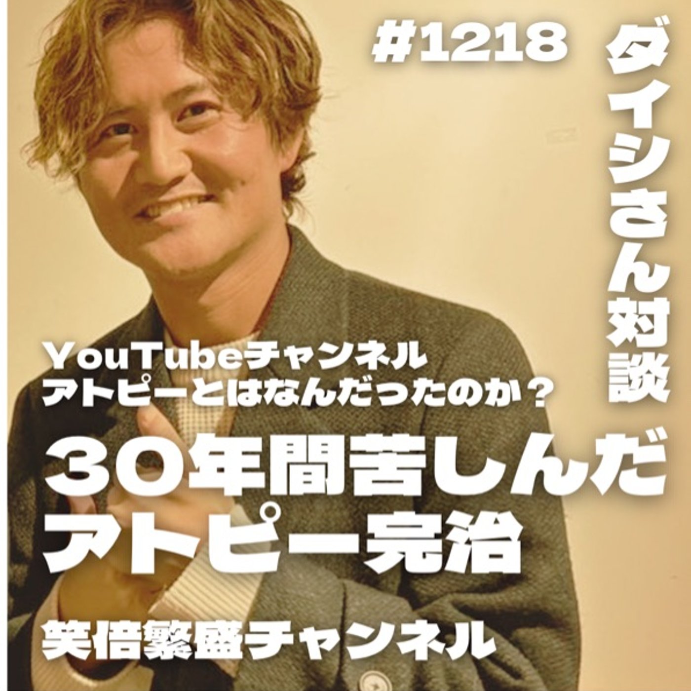 産まれた時からアトピーに苦しみ、そして30年の年月を経て完治に至ったダイシさんをお招きし、そのストーリーや気付き、学びなどについてお話して頂きます。本日は7回目です。