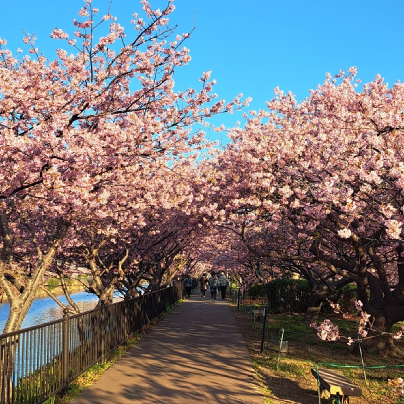 そこの桜を見ました、今年初の。