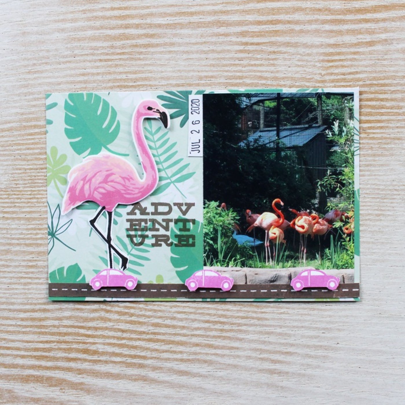今日の冒頭に載せているポケットスクラップキングのジャーナルカード、ここに載せている写真がフラミンゴの写真ですね。