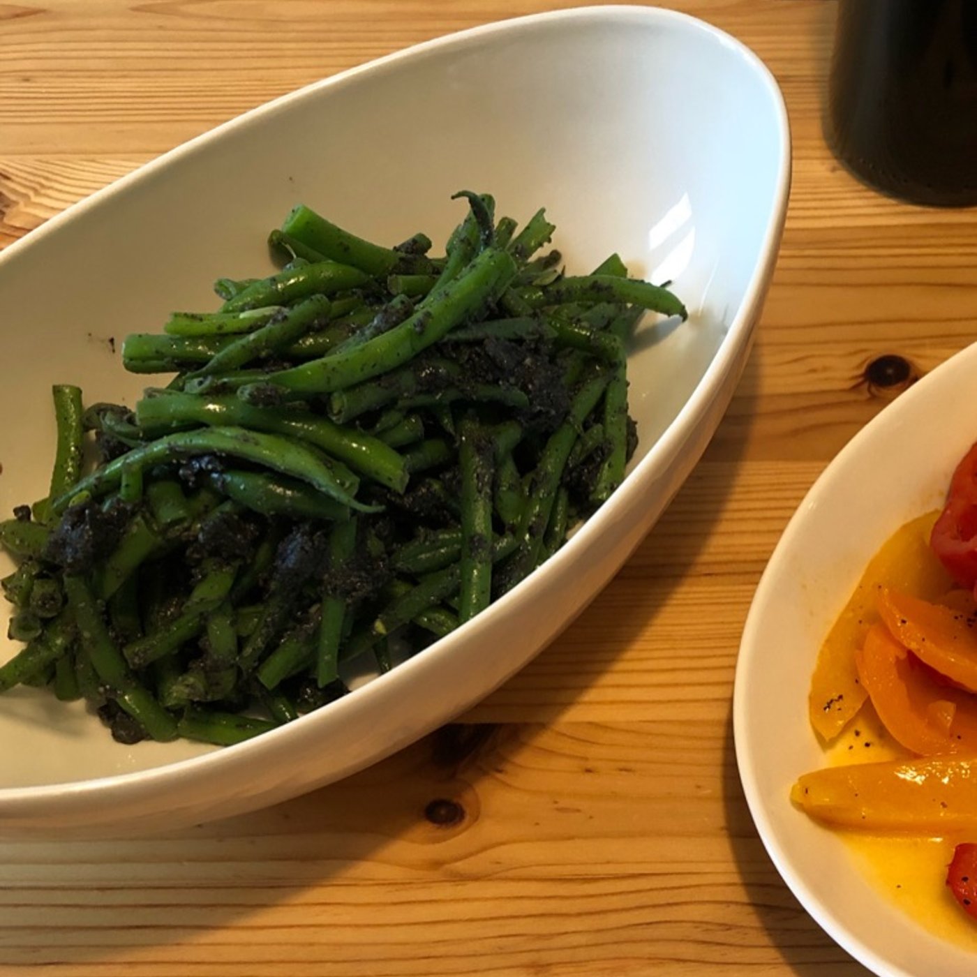 まずインゲン茹でてもらって、それをカットしたものを最終的にこのペーストと混ぜたらば、