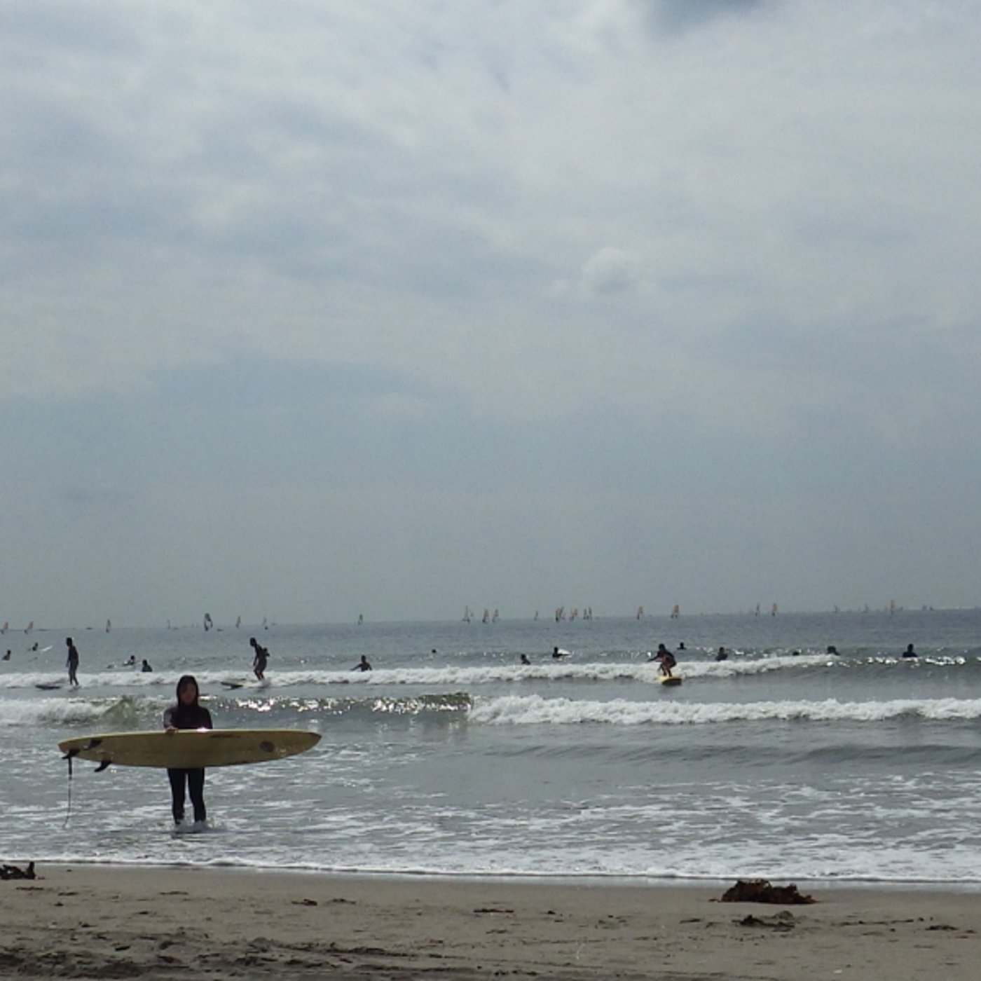 あ、違う。水が濁ってるんですね。水が砂で濁ってるっていうのかな。でも波が起きてるからちょっと行ったんですね。行ってとにかく乗ってみたんですけども、その後に筑納症になってしまいましてですね、私は。