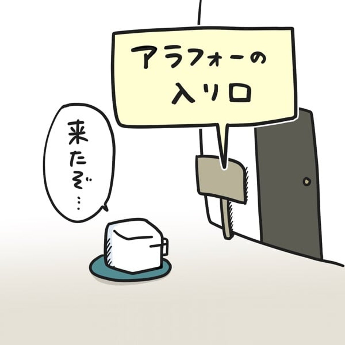 アラフォーの入り口の前に立っているイラストを描いて、投下してみました。