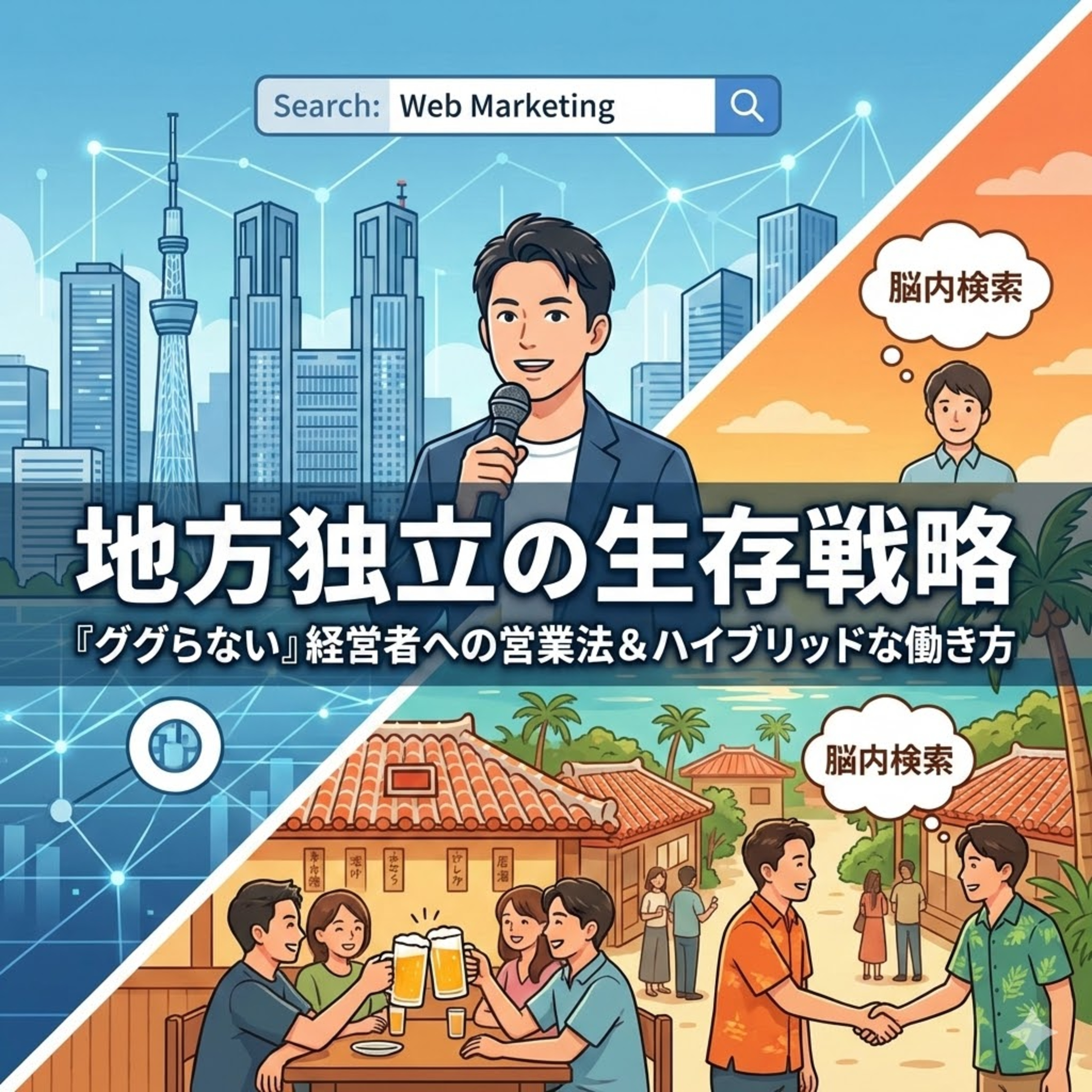 東京から沖縄へUターン独立した経験を基に、地方で食っていくためのリアルな戦略を語ります。都会と異なり、地方の仕事は検索(Google)ではなく、知人の紹介や「脳内検索」で決まることがほとんどです。