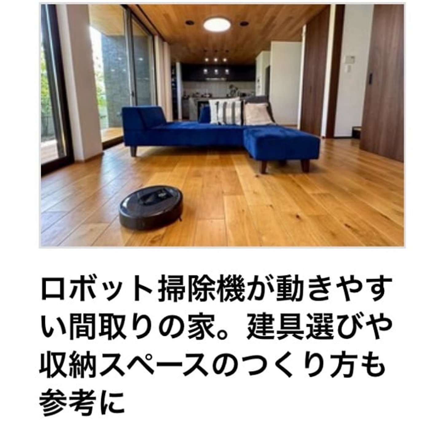 記事のタイトルは、「ロボット掃除機が動きやすい間取りの家。家具選びや収納スペースの作り方も参考に。」というものです。
