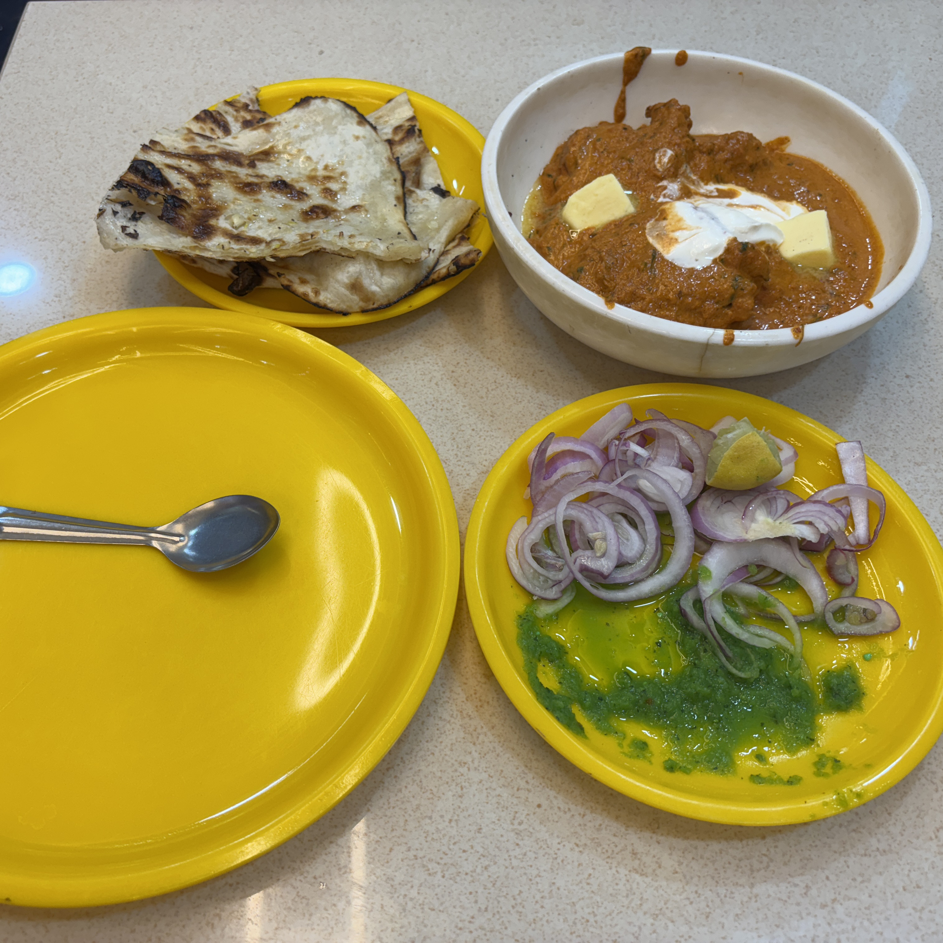バターチキンを頼むとしたらバターチキン、バターチキンハーフ、バターチキンクォーター。