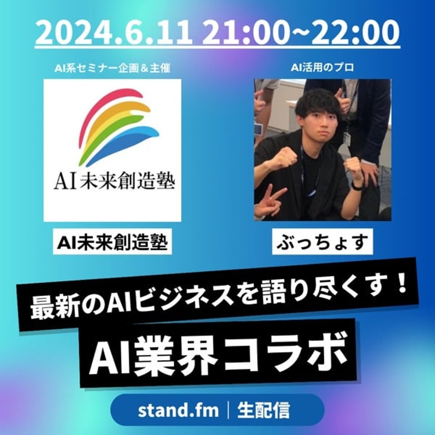 6月19日にAI未来創造塾さんのセミナーに、21時からでしたっけ?21時になってますよね。