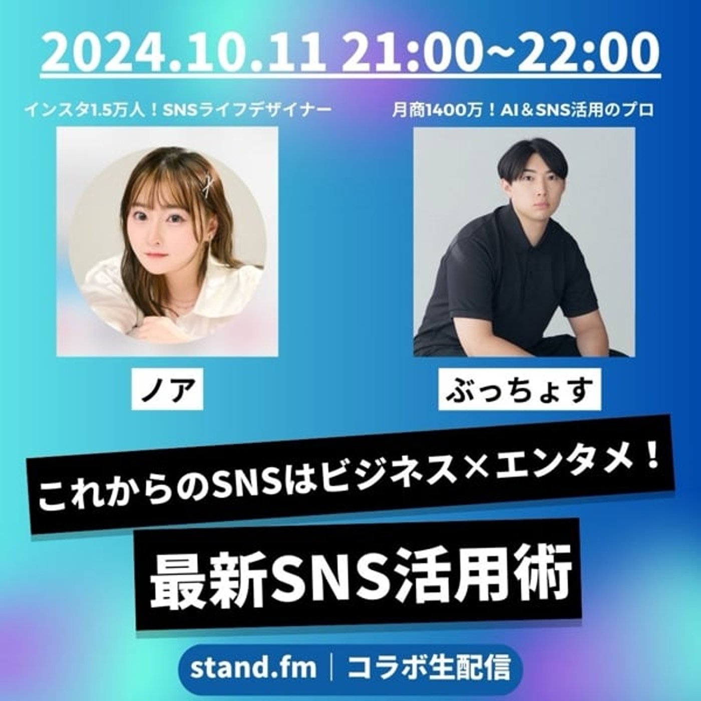 今回はNOAHさんとSNSライフデザイナーのコラボライブをさせていただく形になります