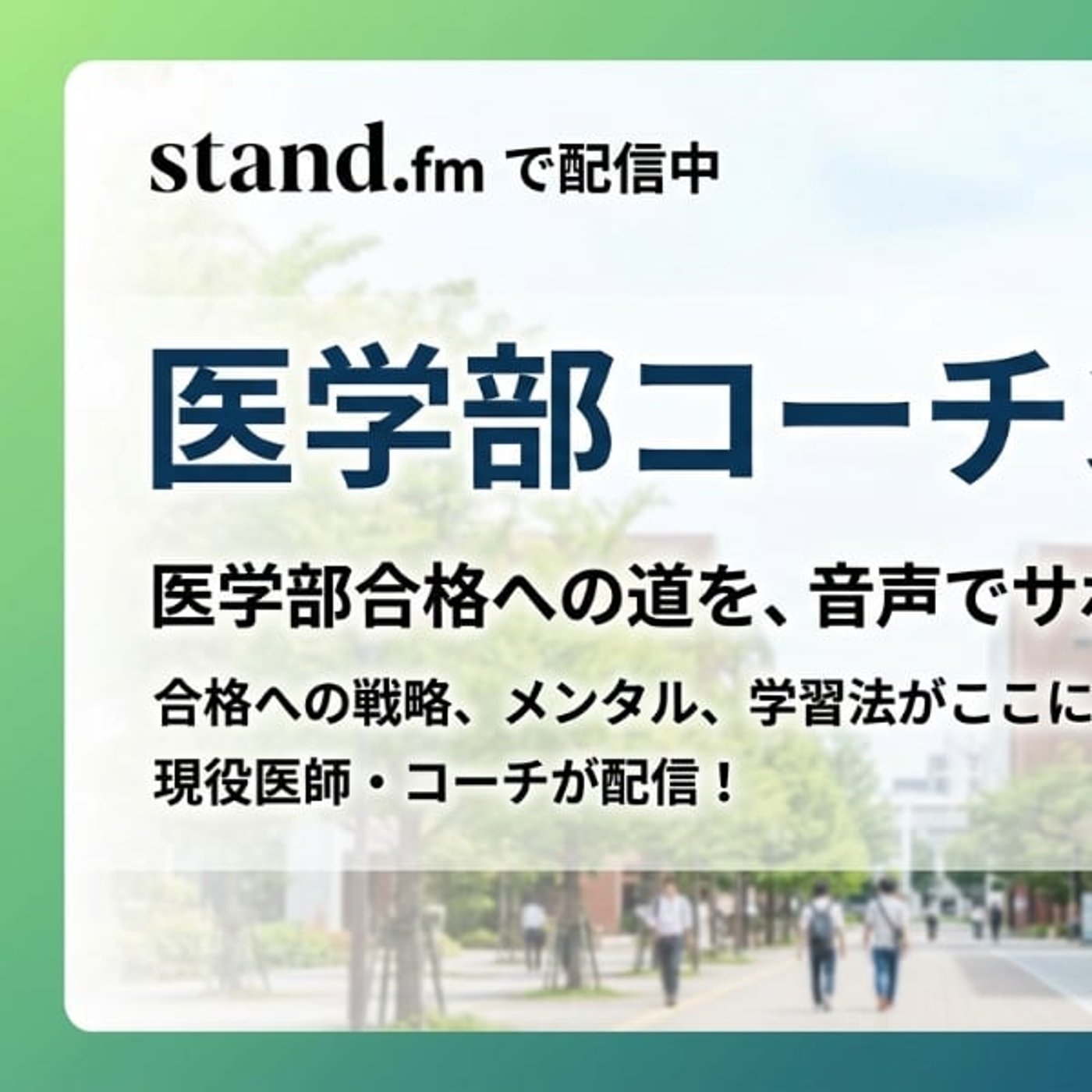 医学部コーチングポッドキャスト、講師のニックニです。 この番組では、医学部に3倍速で合格するための勉強法や戦略、メンタル面などについてお話をしていきます。