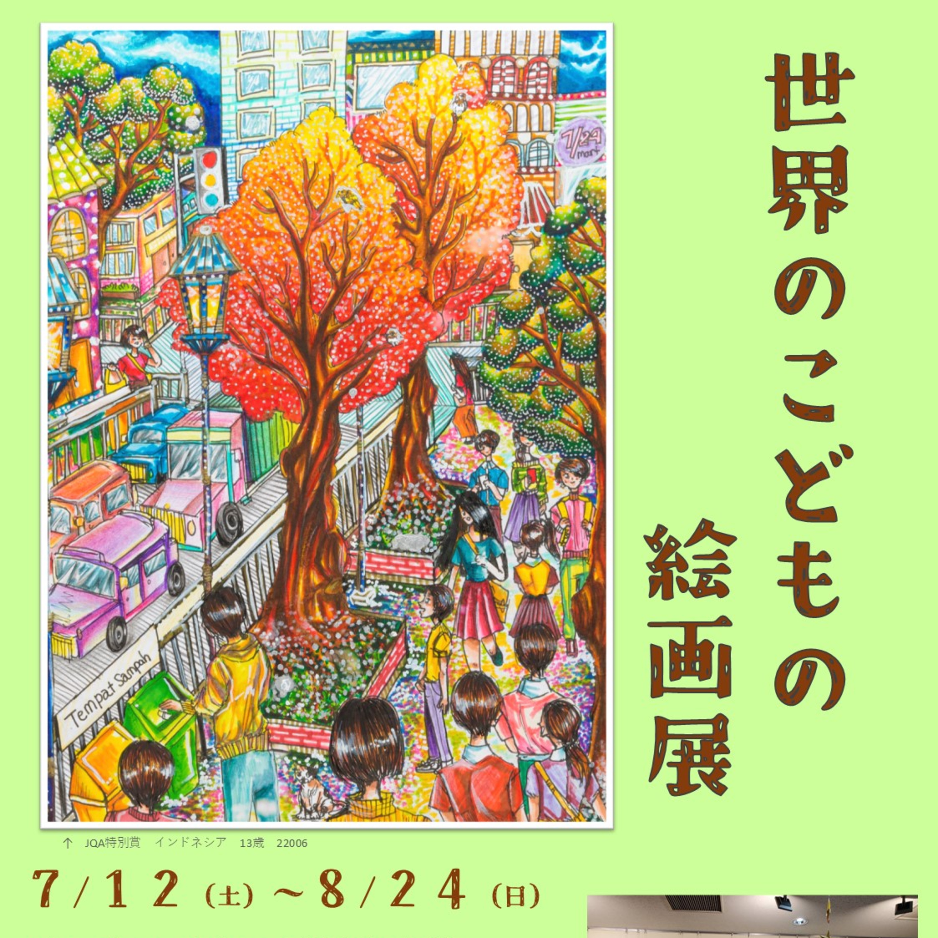 はい、JQA地球環境世界児童絵画コンテストの事務局の協力のもと、世界中の子どもたちが地球環境をテーマに描いた作品を展示します。