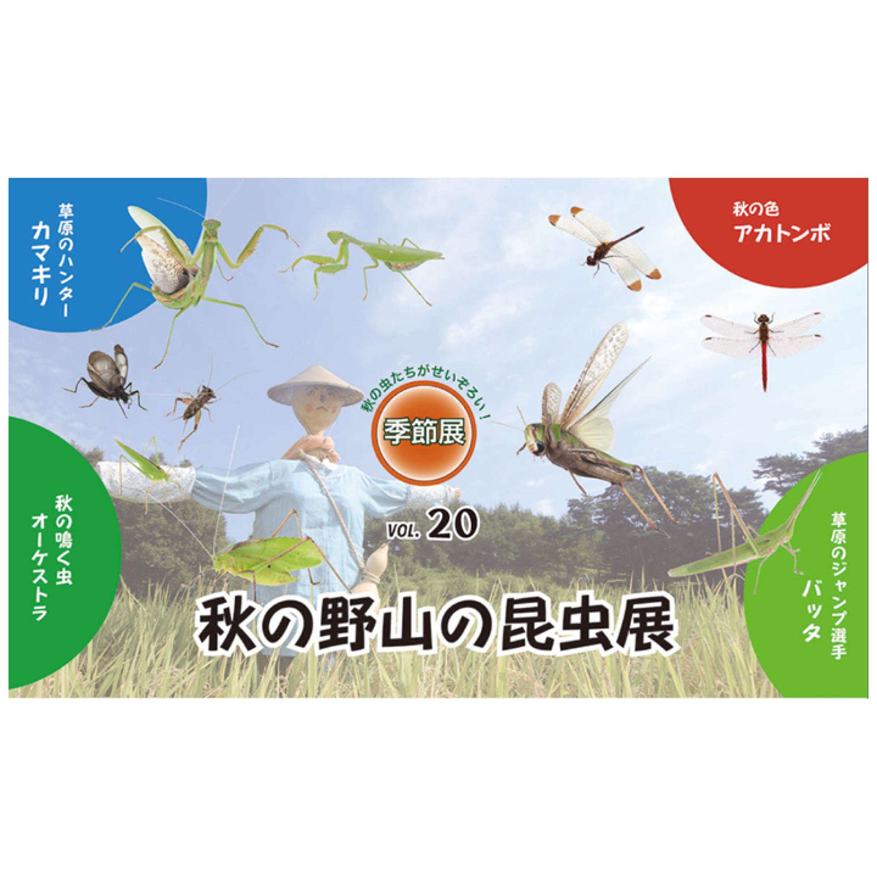 はい。秋に見られる代表的な昆虫であるトンボやカマキリ、バッタ、コオロギなどについて、その種類や生活の様子、生態などをパネルや標本で詳しく紹介しています。