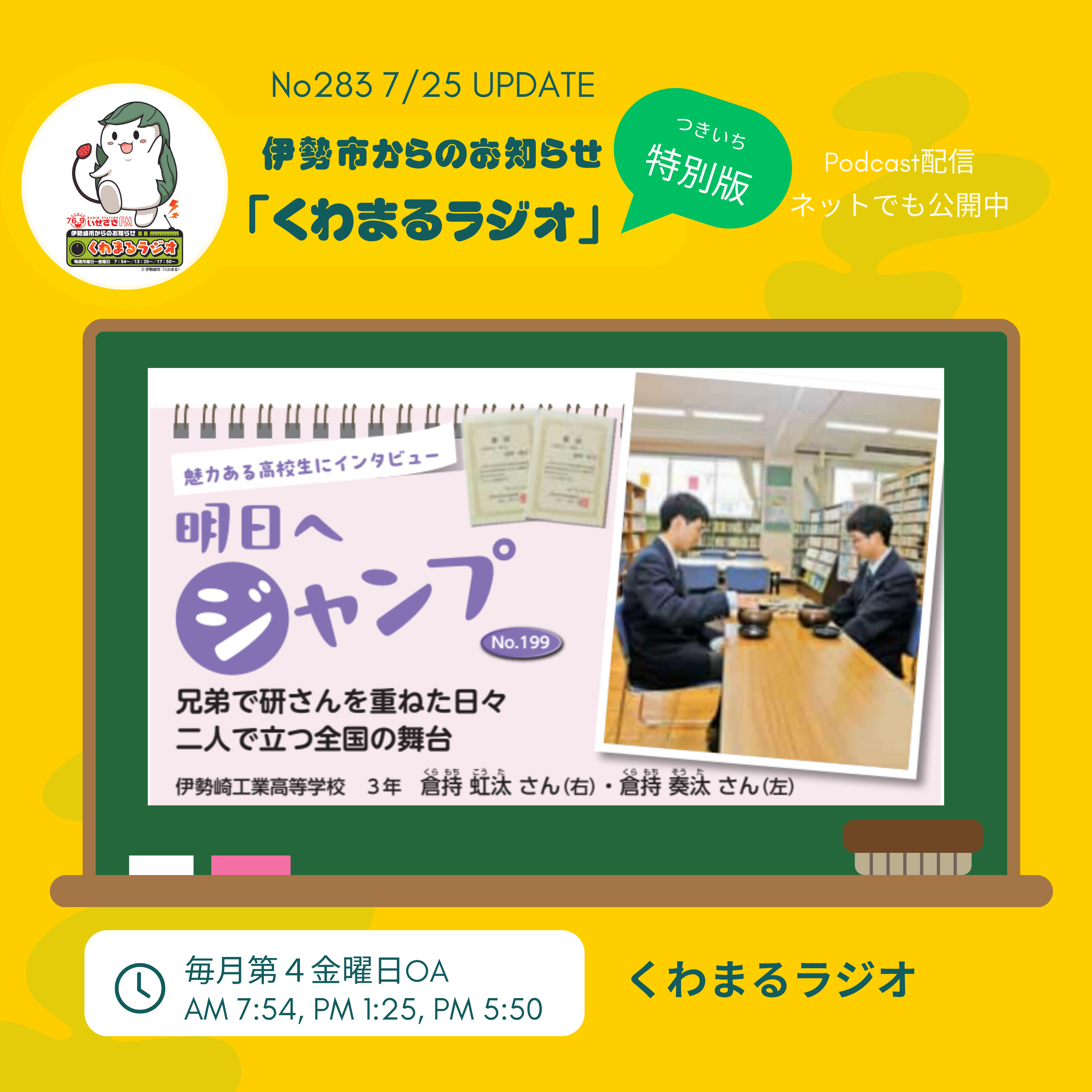 伊勢崎市からのお知らせ、くわまるラジオ。この番組は、伊勢崎市の情報はお知らせします。