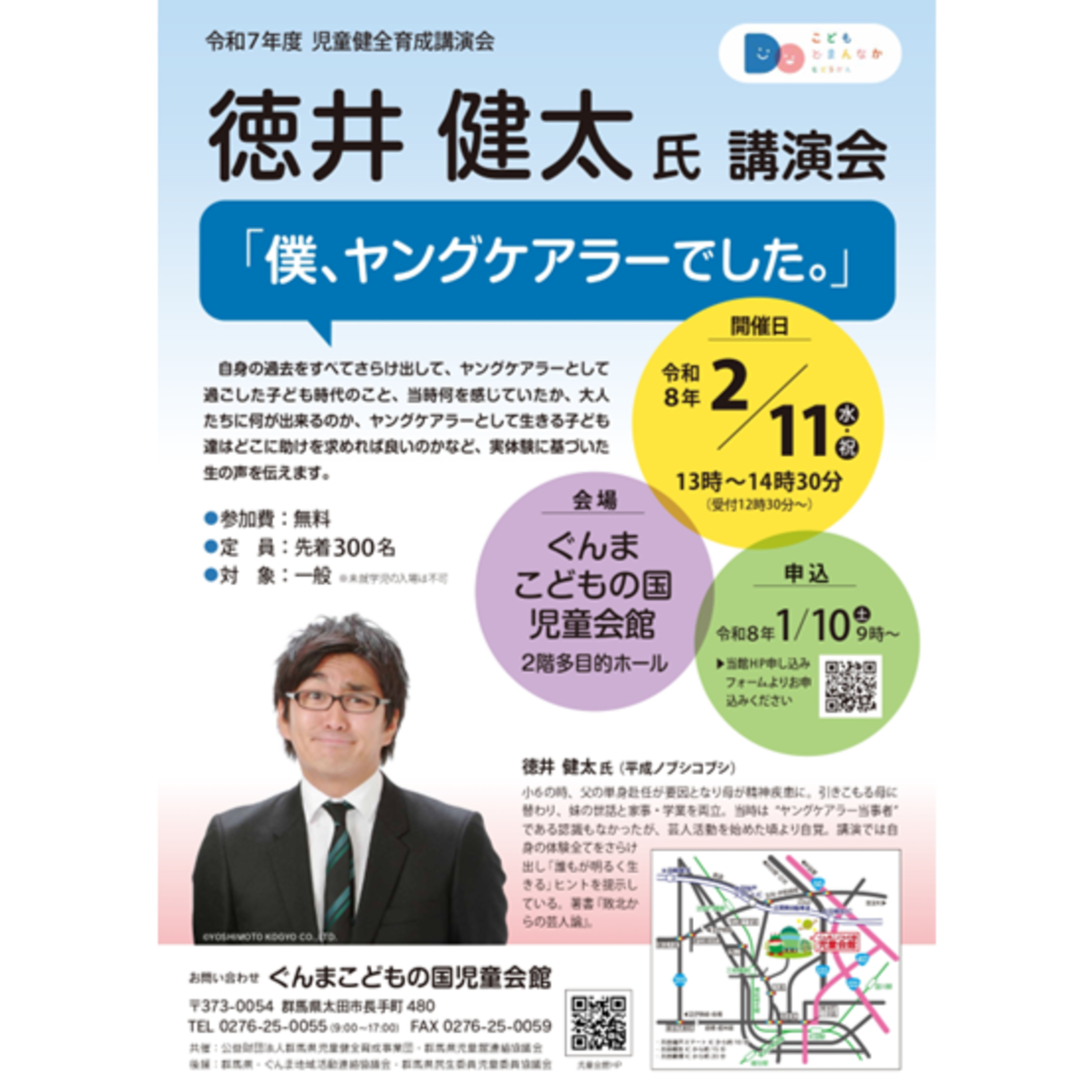 1月10日より受付が始まっています、開館35周年特別企画「児童健全育成講演会 徳井健太氏講演