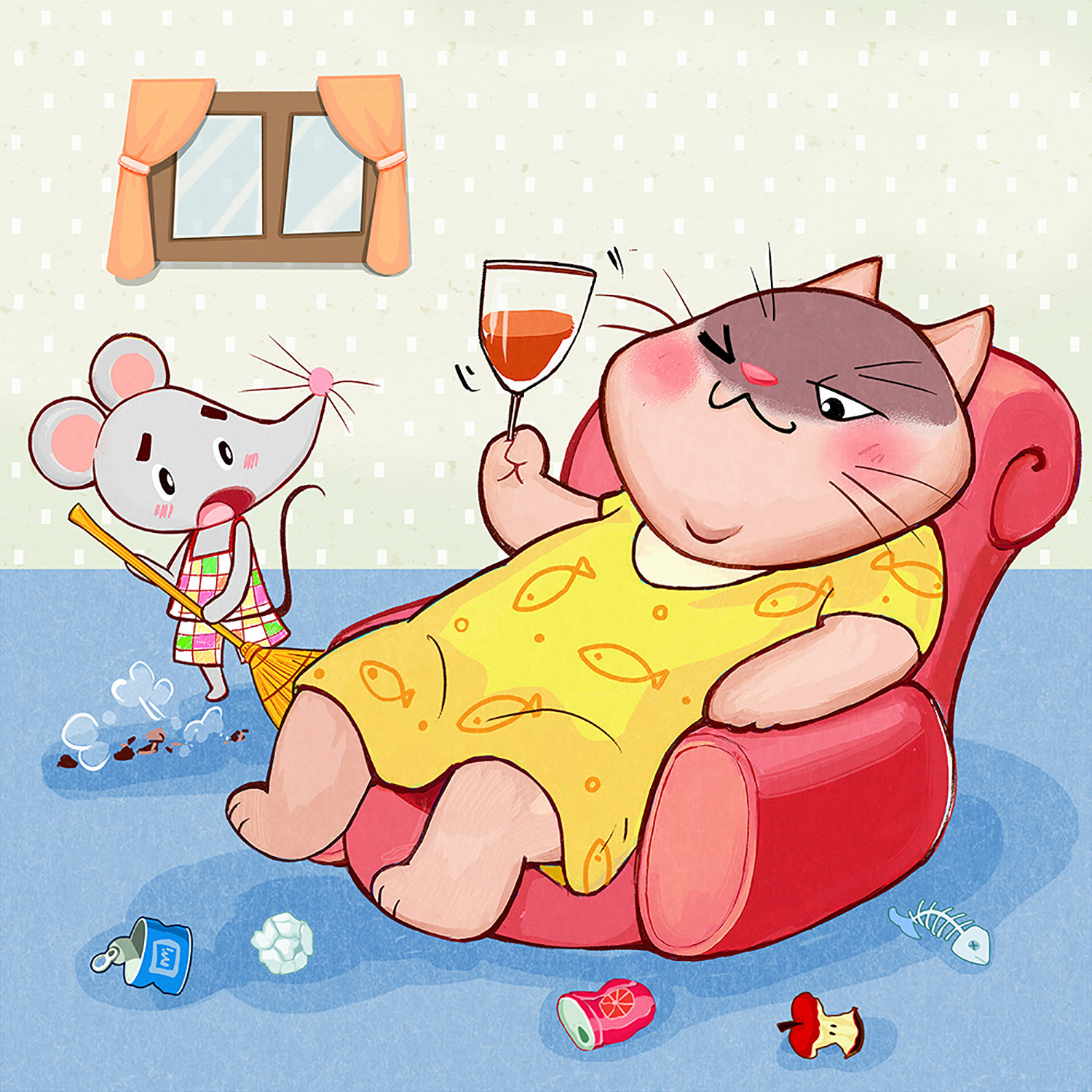 むかしむかし、とても太った怠け者の猫がいました。彼女は何をするにも嫌がり、毎日文句を言っていました…