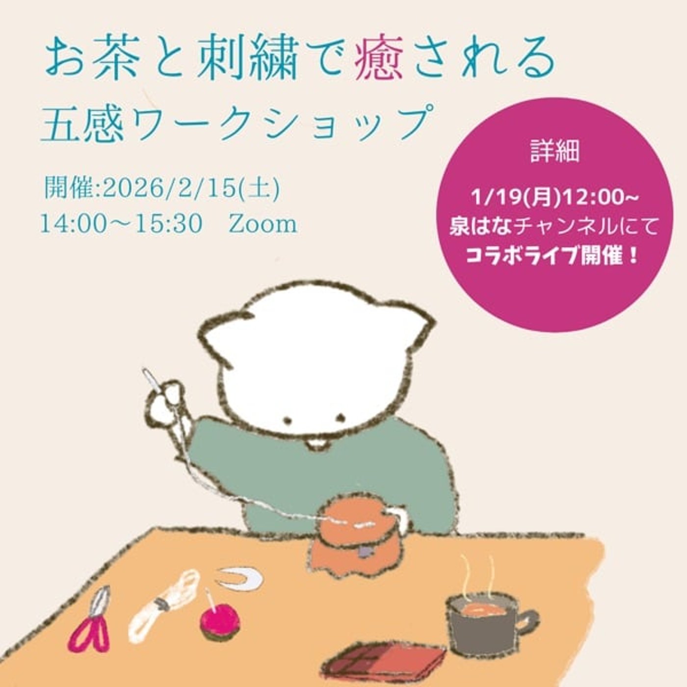 パチパチパチパチ。こちらのワークショップの詳細とかね、このワークショップで感じてもらいたいこと、こちらなんかをですね、コラボライブでお話しさせていただこうかなというふうに思っています。