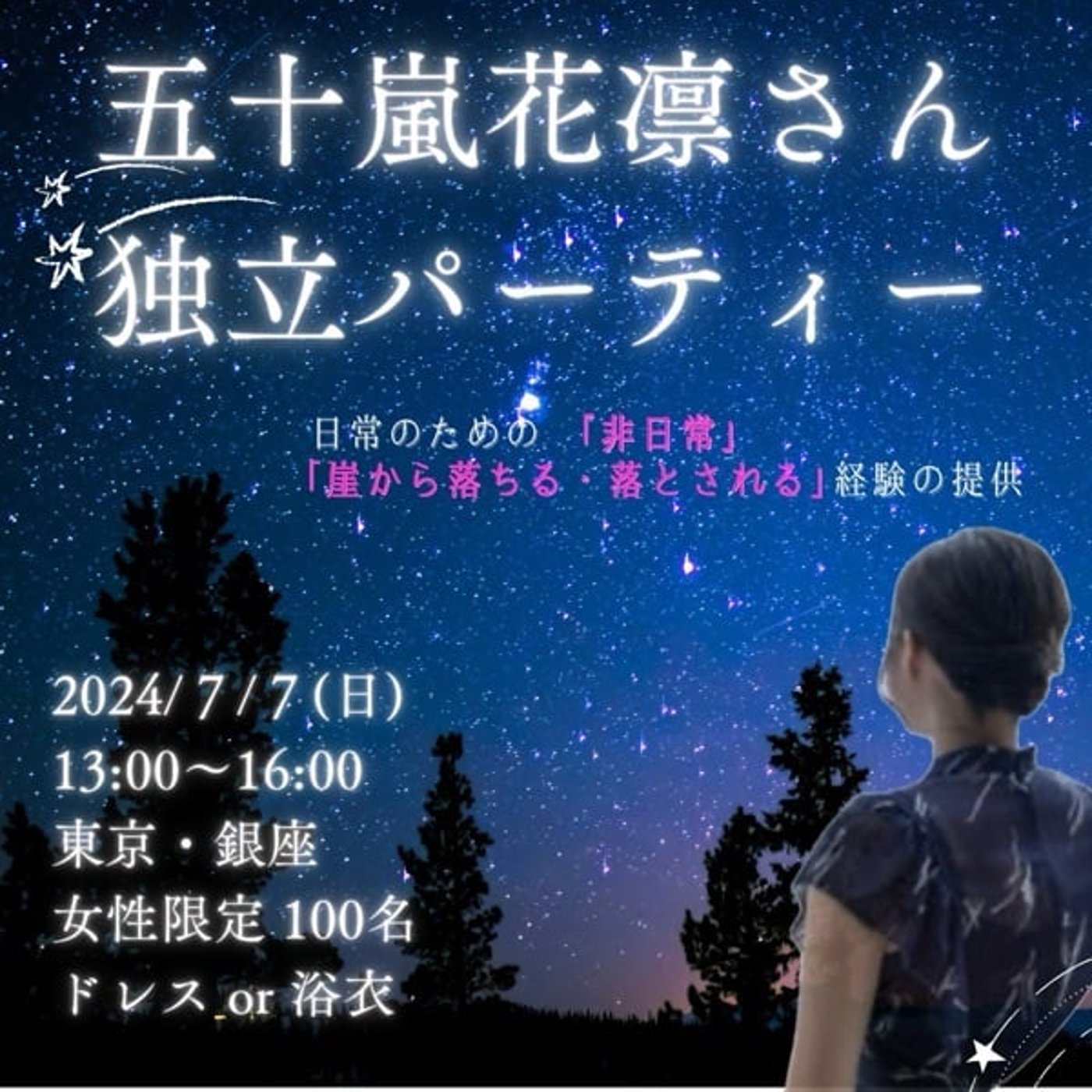 まずですね、あの場所、日時はね、7月7日、これ月曜日なんですけどね、7月7日月曜日、午後12時から14時半の2時間半、場所は銀座でございます。