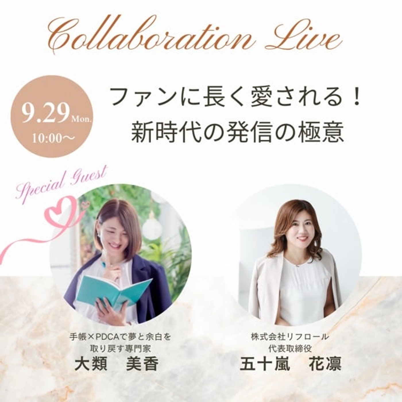 で、美香ちゃん自身はですね、今手帳をかけるPDCAで夢と余白を取り戻す専門家ということで、いろいろな本当にいろいろな幅広い活動されてるんですけれども、今日はね、そんな美香ちゃんと一緒にファンに愛される新時代の発信の極意お話ししながらですね、美香ちゃんがですね、東京でね、10月24日に開催される佐々木久野さんの講演会のね、プロデューサーしてるということなので、ちょっとそのお話もね、聞いていきたいなと思いますので、