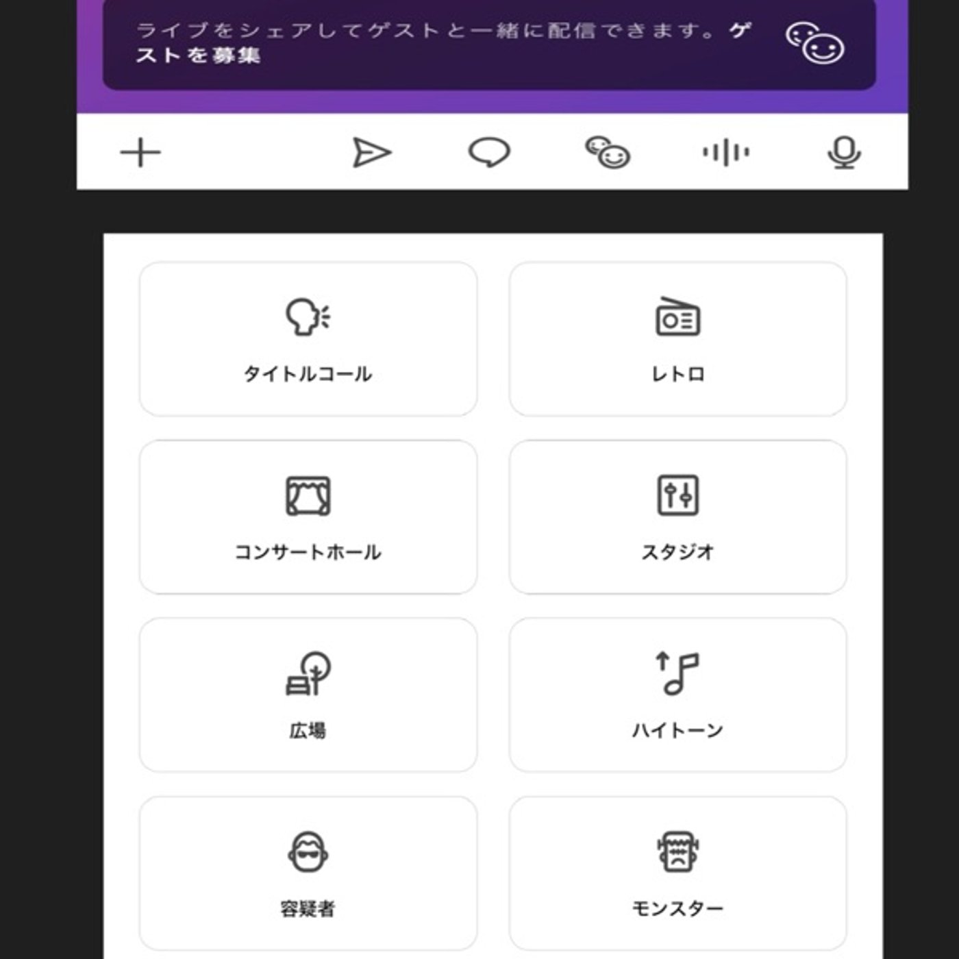 ライブするときの画面が上に出てて、下にそのエフェクト?声変えるやつ?