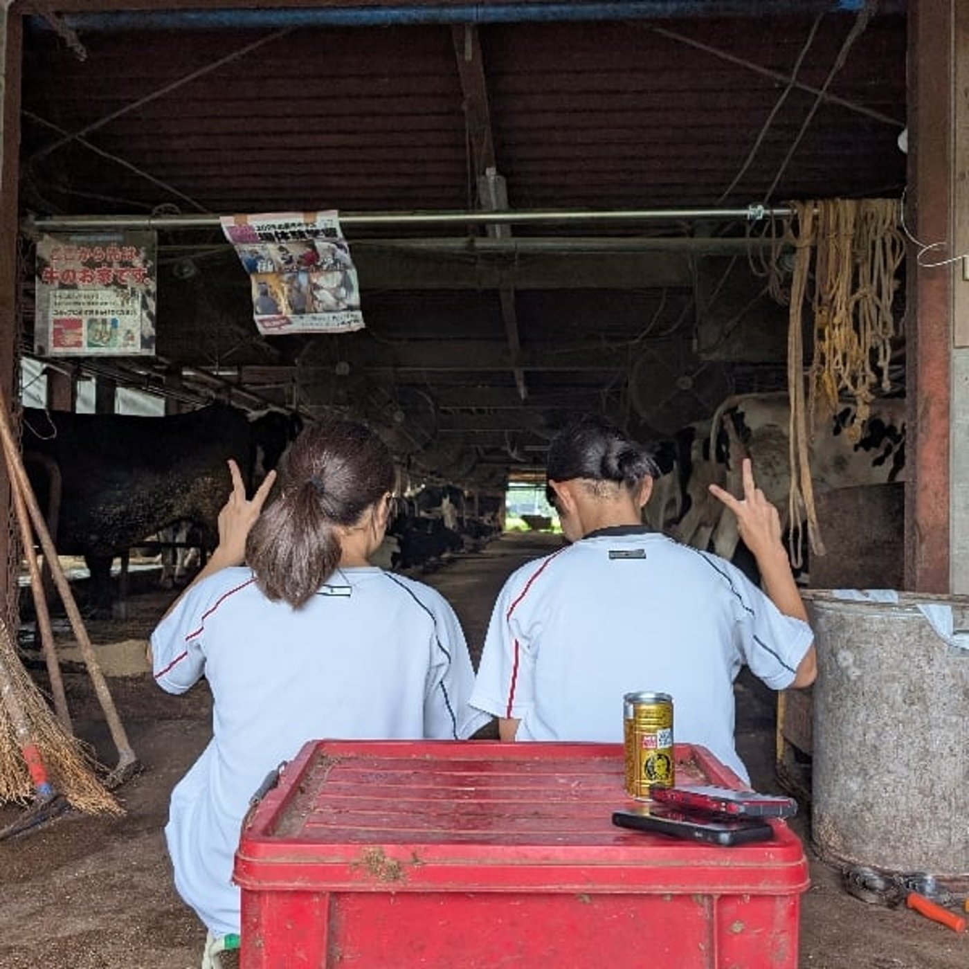 仕事の内容を教えてください。仕事の内容はもう多岐にはあるんで、それこそ牛の血ししぼりやって餌やりやって、掃除やって、はい。あとは牛の羽付けって言って、あの赤ちゃんを産む準備みたいなのもやらないとね。