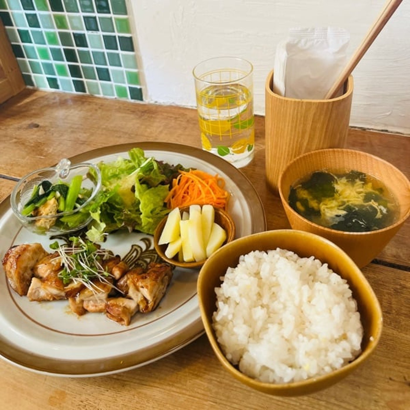 ドレッシングが手作りでめっちゃおいしいらしくて、それを食べている。