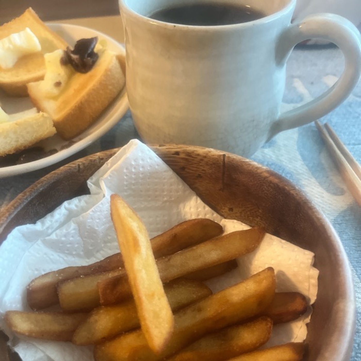 写真はモスバーガーのポテト持って帰ったらしなしなになってて。それはフライパンで焼くと、揚げたてのほかほかになって美味しかった!🍟