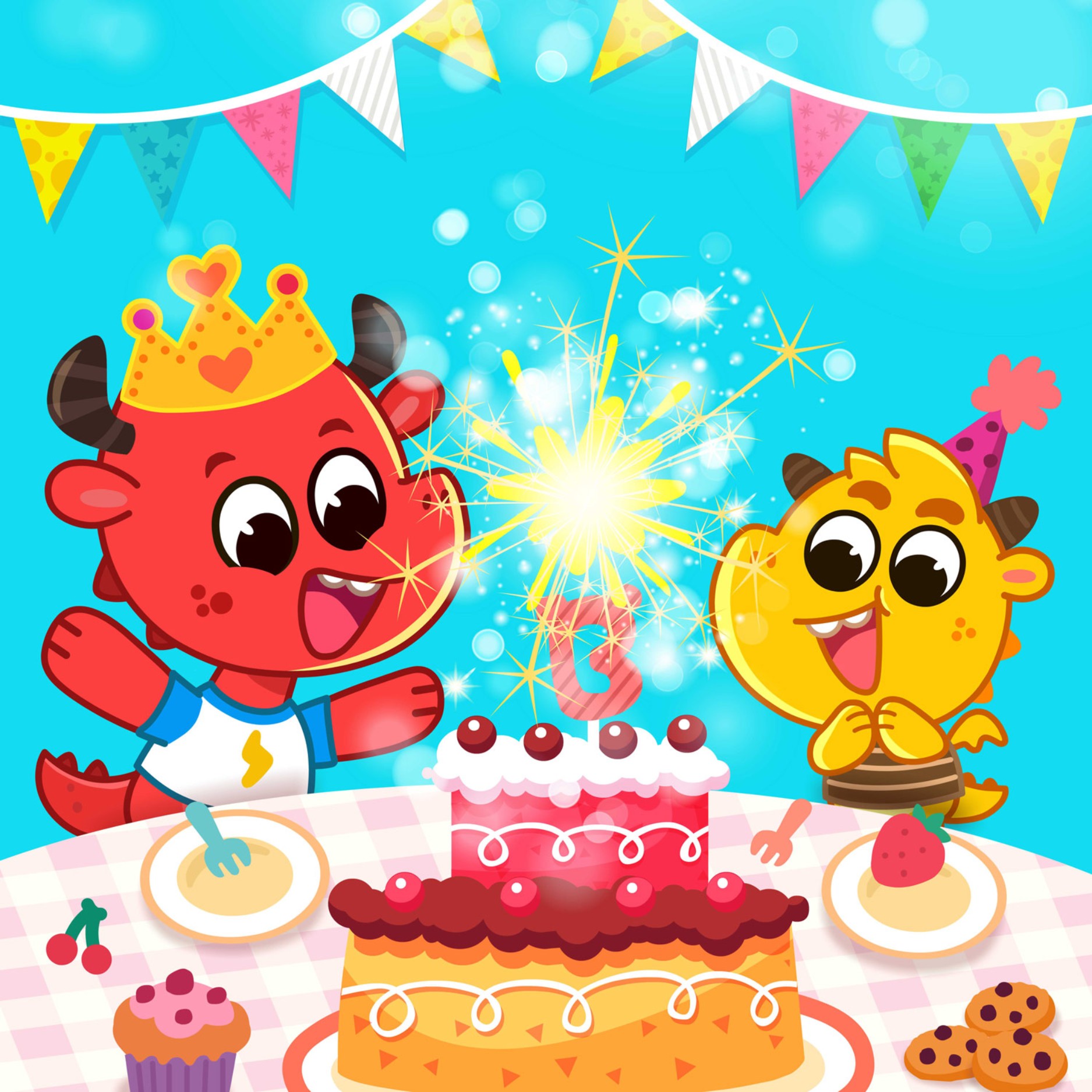 おや?ファイヤードラゴンが一人でハッピーバースデーの歌を歌っています。それに、テーブルにはケーキがなく、ろうそくだけが置かれています。とてもヘンテコです。ドラコも不思議に思って