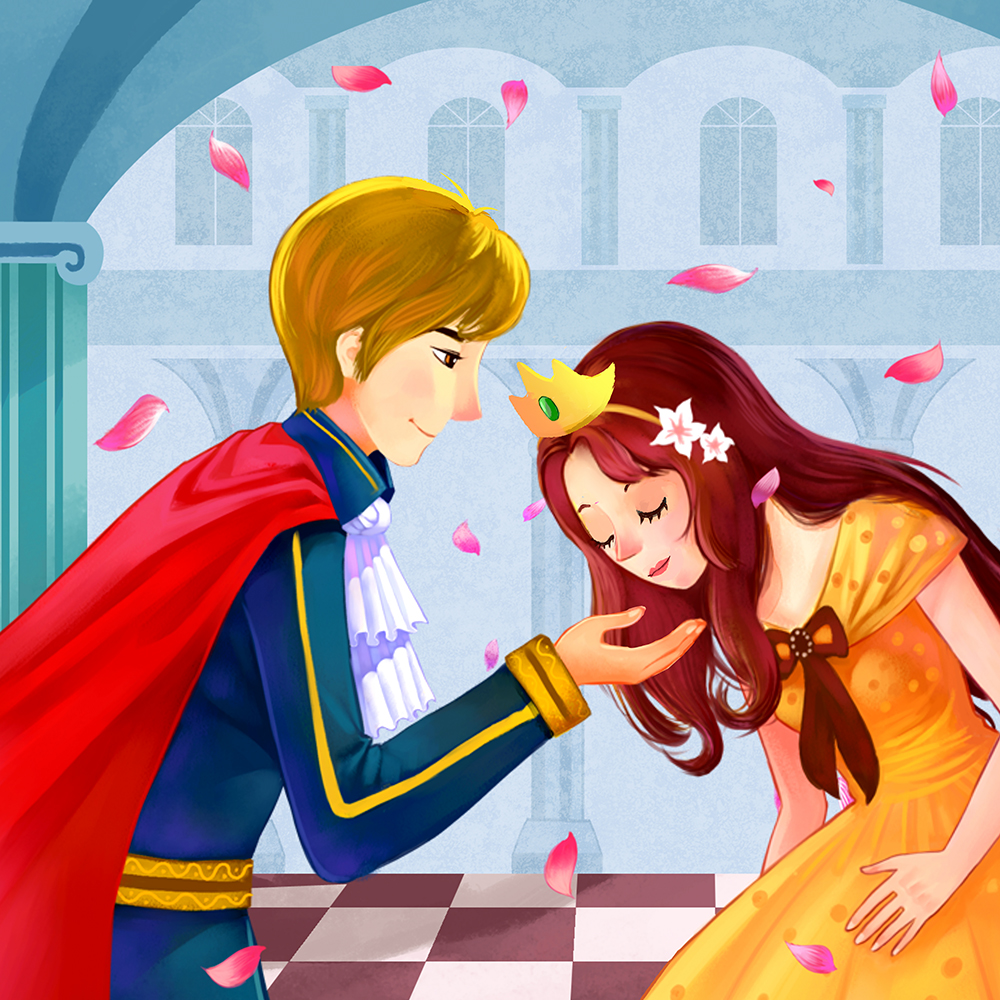 昔々、あるところに、サナというお姫様がいました。彼女は、人助けが大好きなお姫様でした。ある日、サナ姫が森で遊んでいると、小さな王冠をかぶった、小さなカエルがいました。