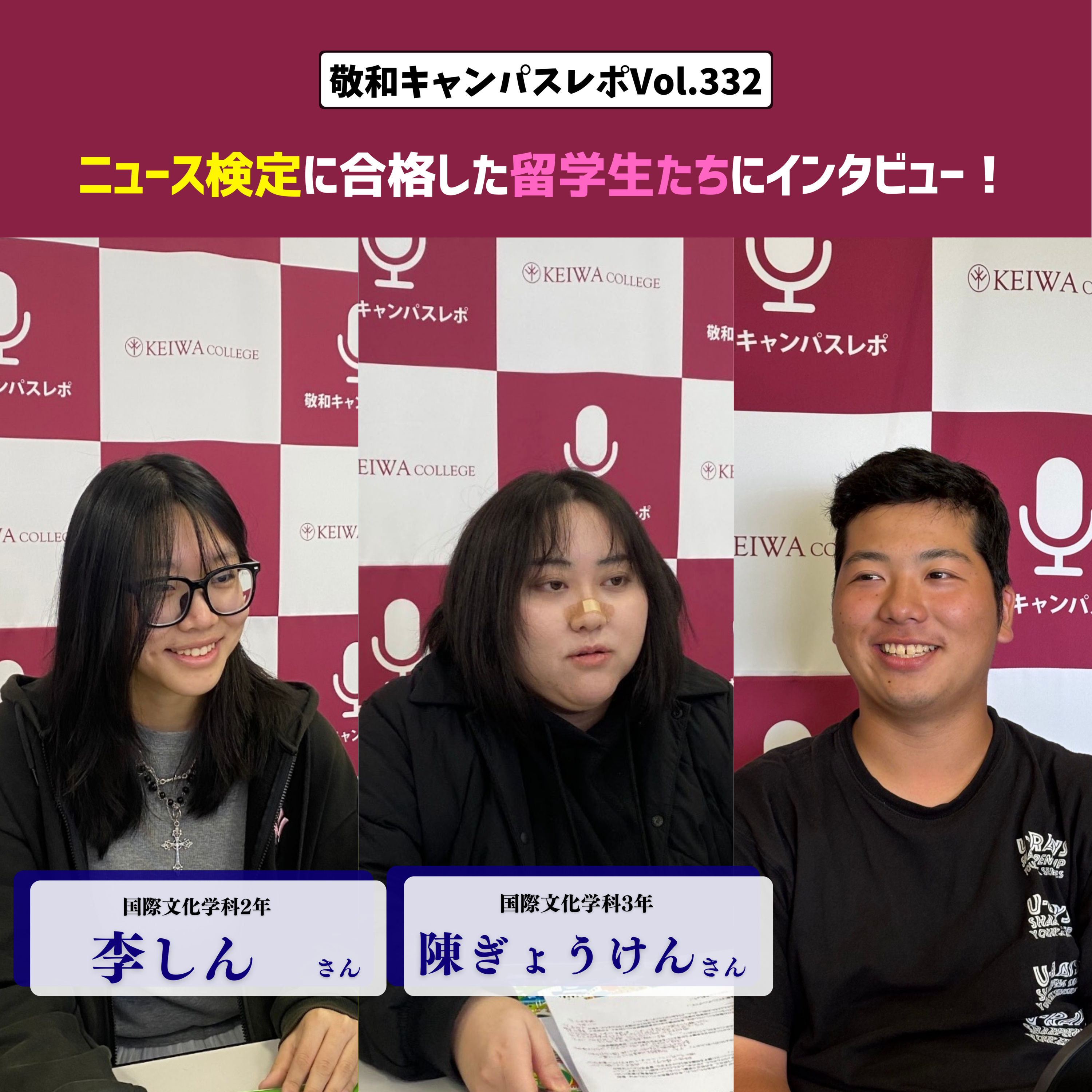 国際文化学科3年の陳行健さんと、2年の李鑫さんとともにお話ししました。