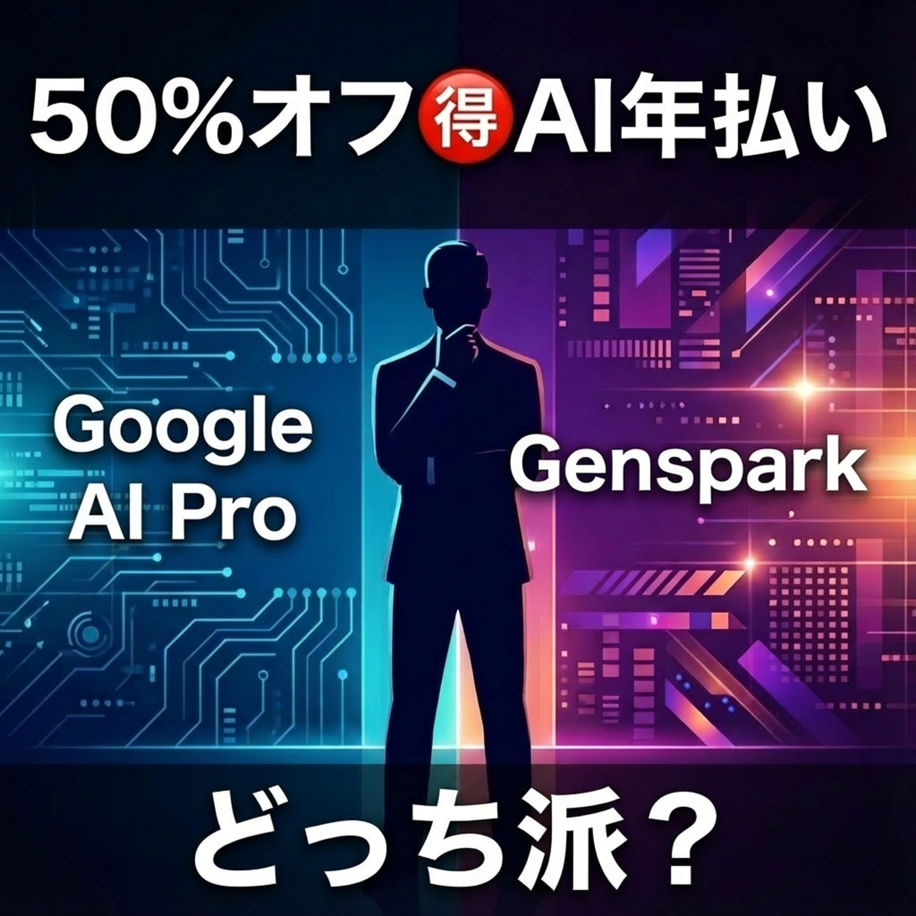 今、どっちにしようか悩んでいます。年末年始のセールということなのか、AIのサービス関連で年額払うと50%オフになるみたいな2つのサービスで悩んでいるところです。