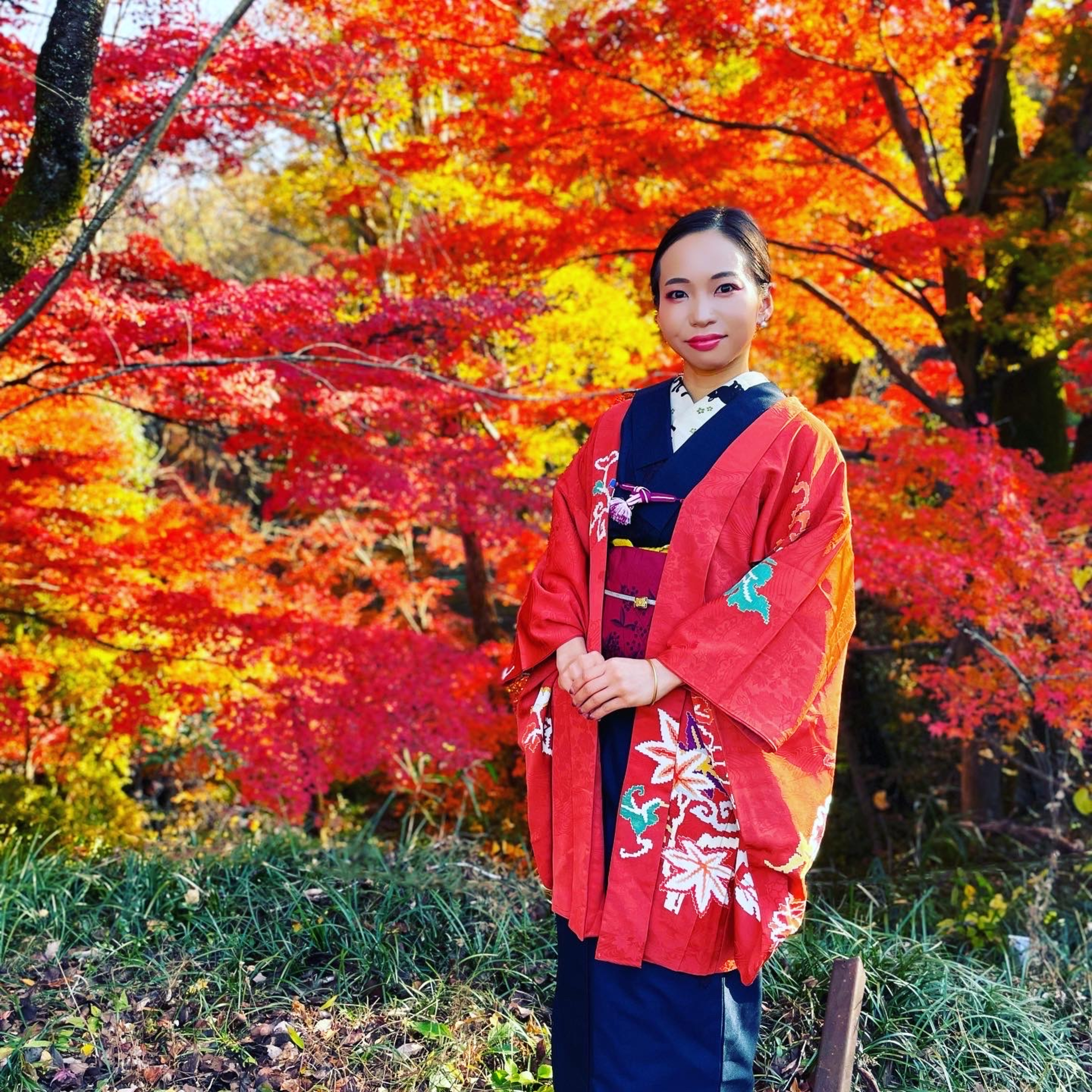 半衿をがっつり見せて紅葉柄の羽織を着て紅葉の中佇む・・・これぞ秋のアンティークよね!!(個人の感想です)