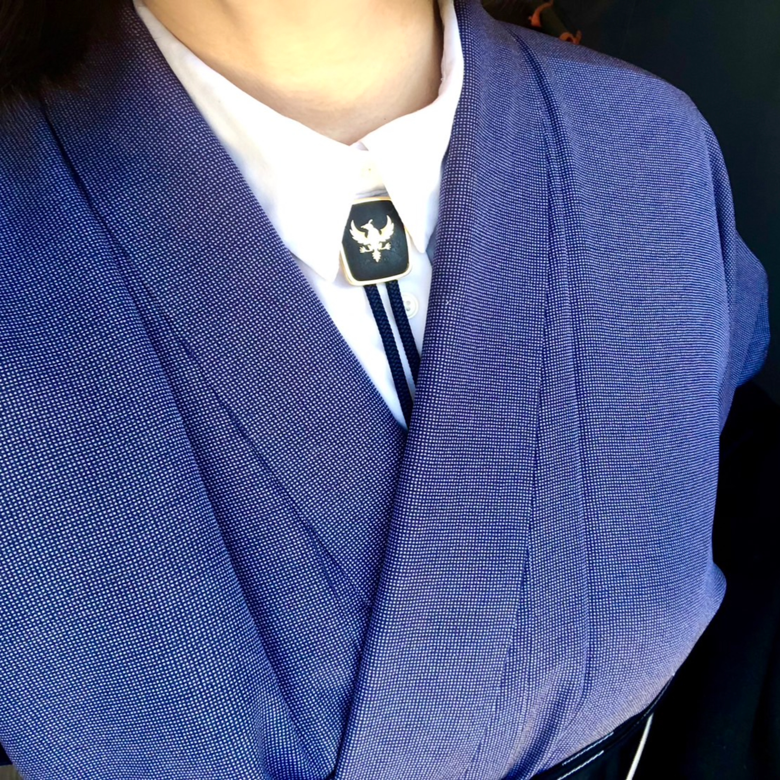 そう、だから男着付けにした時に、シャツのところにループタイにして、大島紬とか着たら男着付けでかっこいいかなとか。