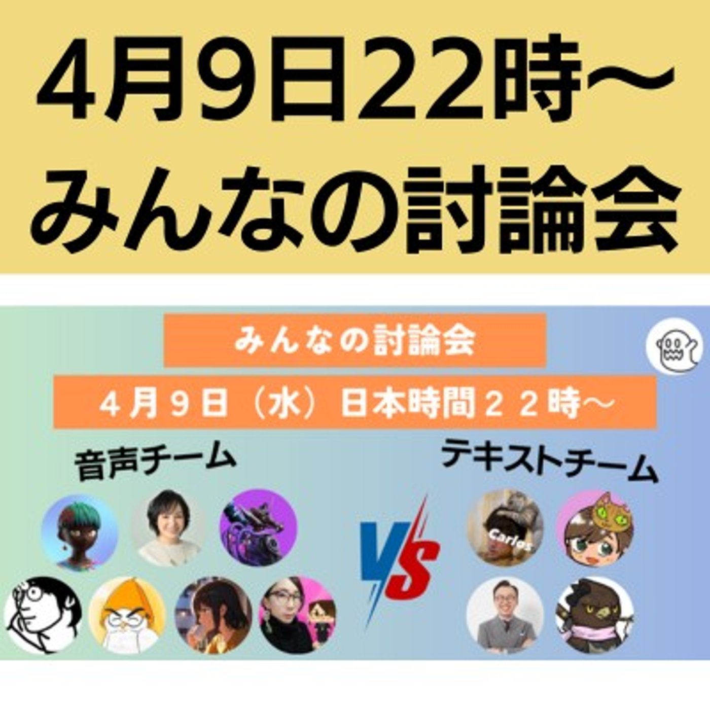 今日は4月9日22時から行われる、みんなの討論会のイメージトレーニングをしていきます。