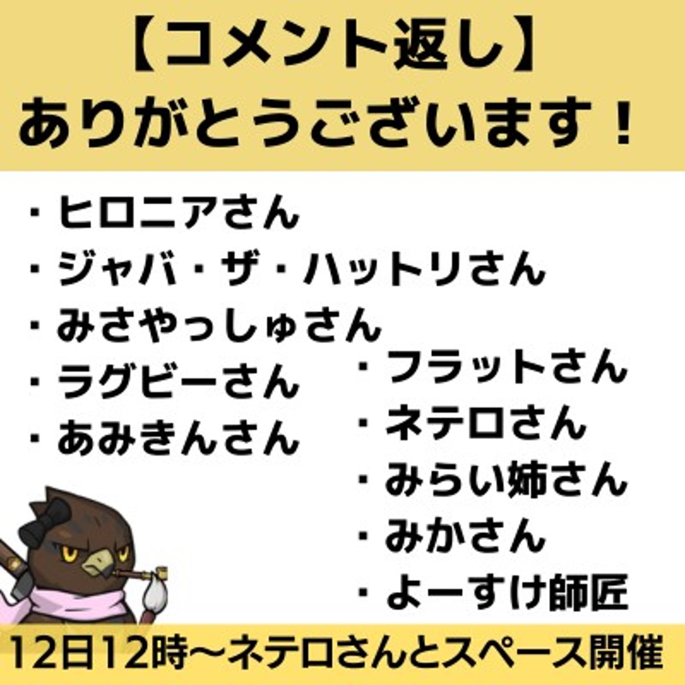 ネテロさんからはAIではなく、ネテロさんと今度スペースで対談をするんですよ。