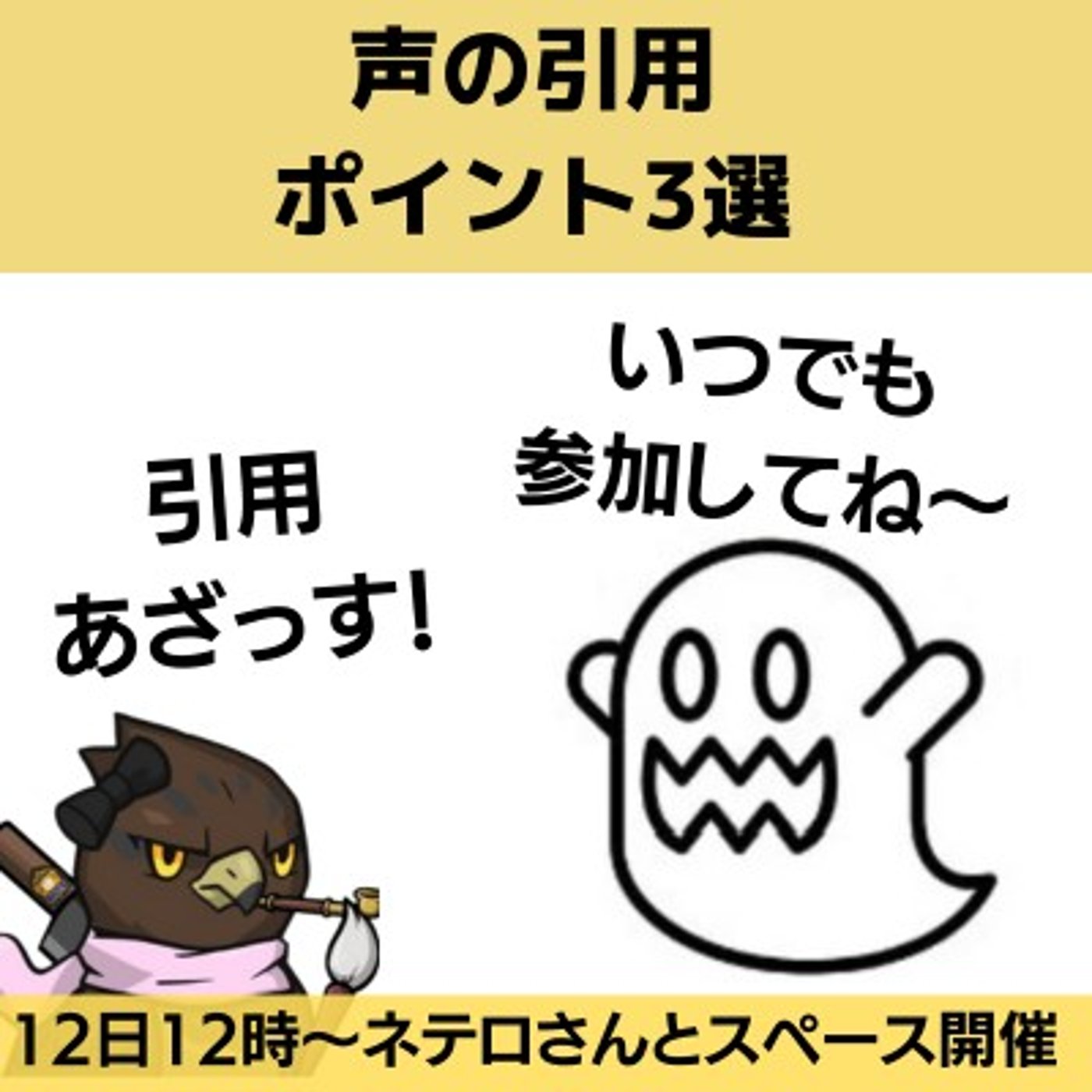 今日は、ジャバ・ザ・ハットリさんの声の引用に参加するときのポイント3選というテーマでお話をします。