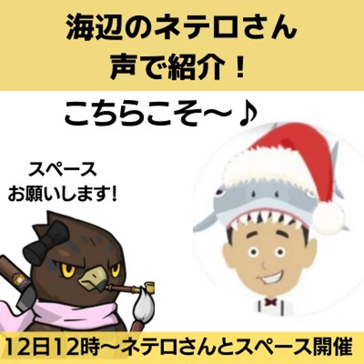 9月の12日お昼12時から海辺のネテロさんとスペースを行います。