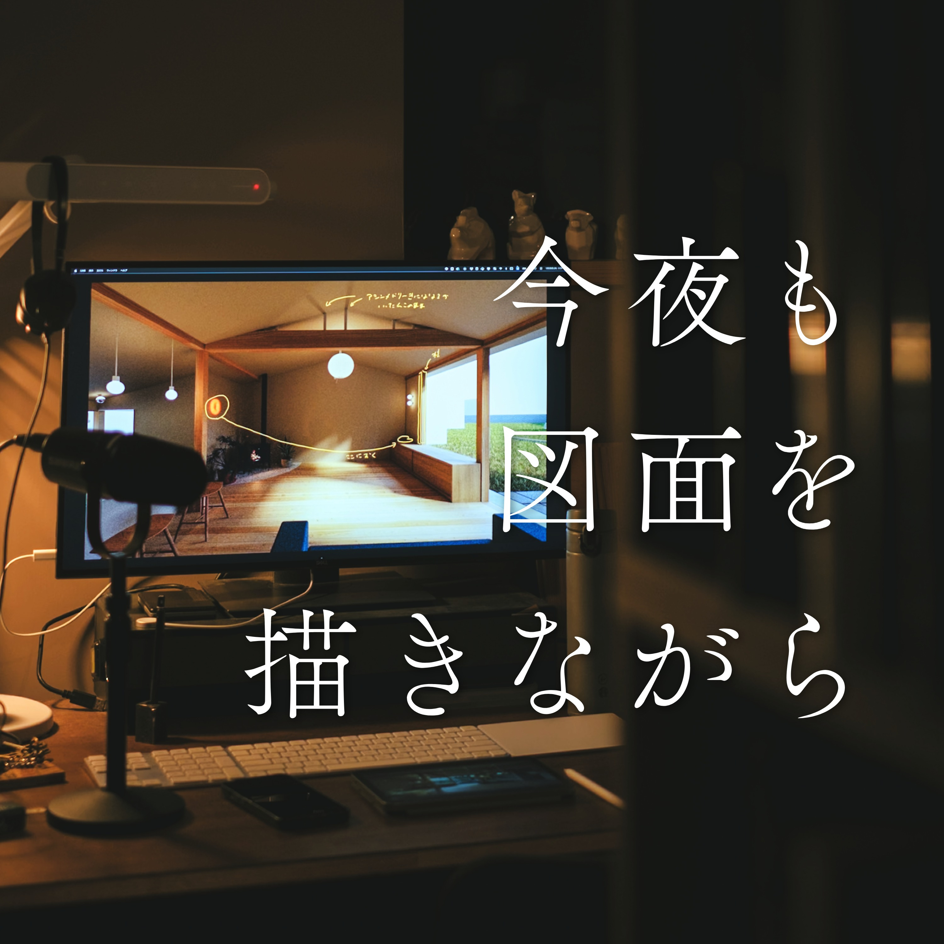 建築設計を仕事にしているあげみとふくしまが、夜な夜な図面を描きながら話していく番組です。