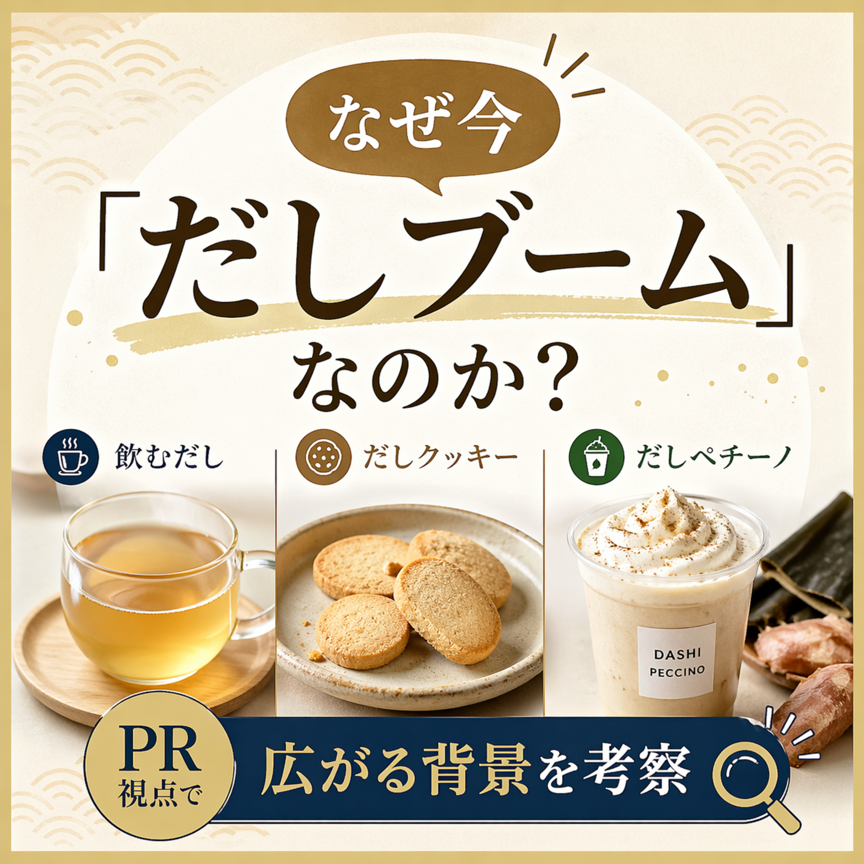 料理の土台を支える存在だった出汁が、今や飲み物やスイーツ、カフェメニューの主役になり始めています。今回は、なぜ今“出汁ブーム”が起きているのか、そしてそこから学べるPR戦略について深掘りしました。