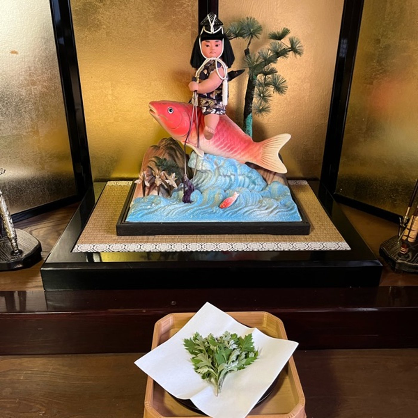 夫が初節句の時に飾ってたという金太郎さんをずっと飾ってるんですけれどもね、