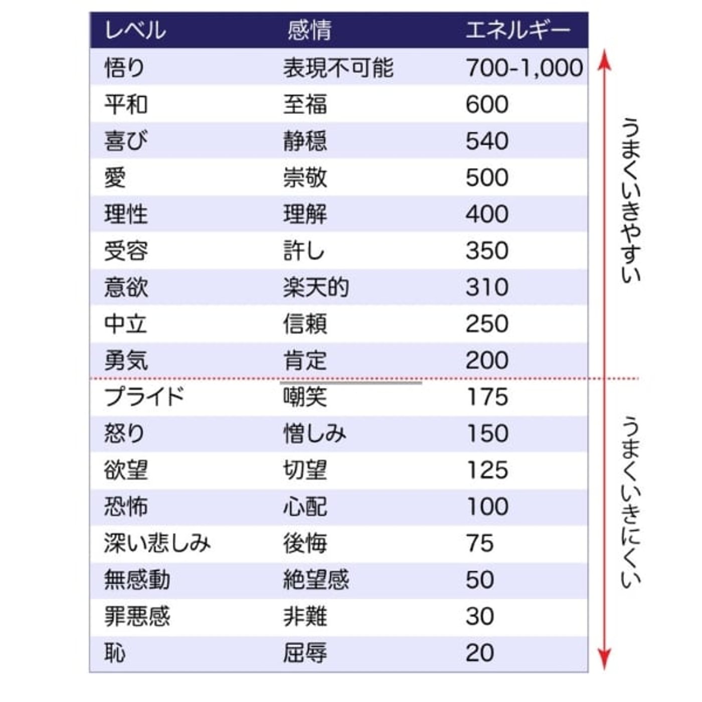 この表を見るとね、一番下が恥、愚直、二重、エネルギーレベルがね。