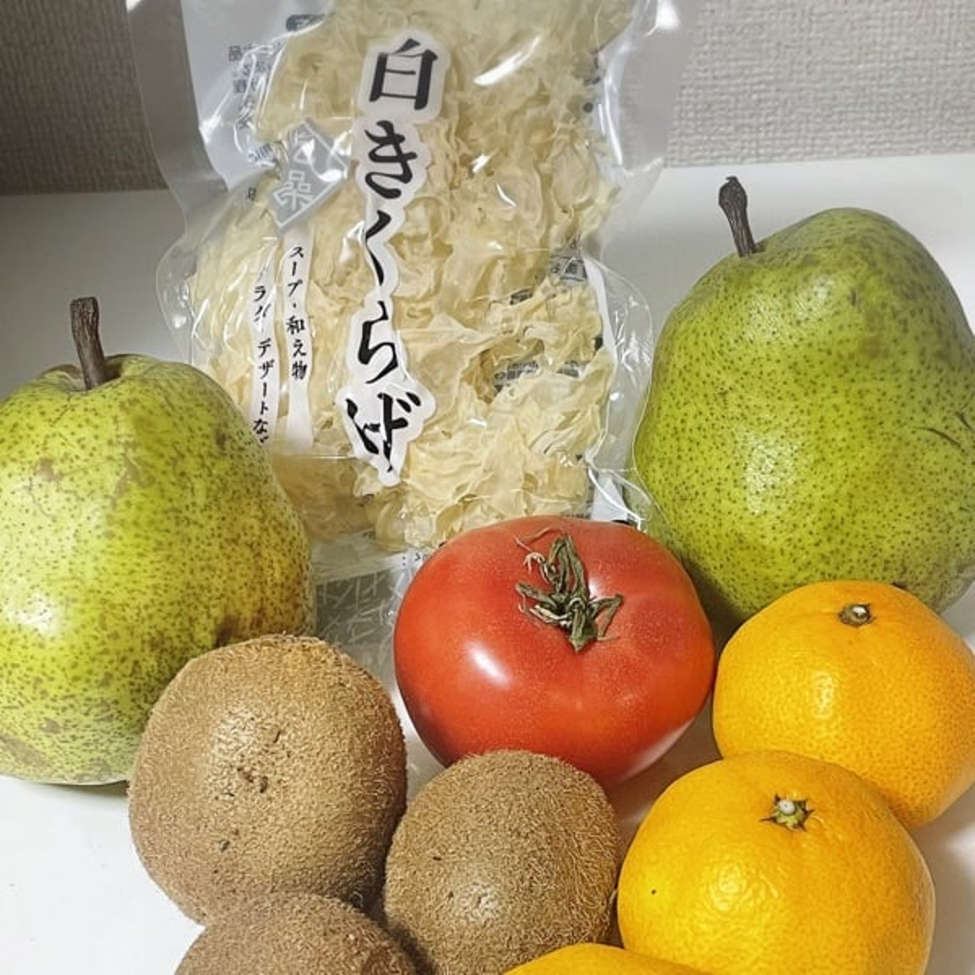 ちょうど梨と一緒に白木クラゲも入れて、